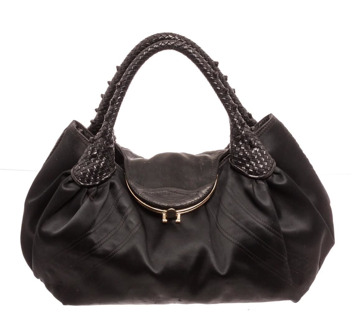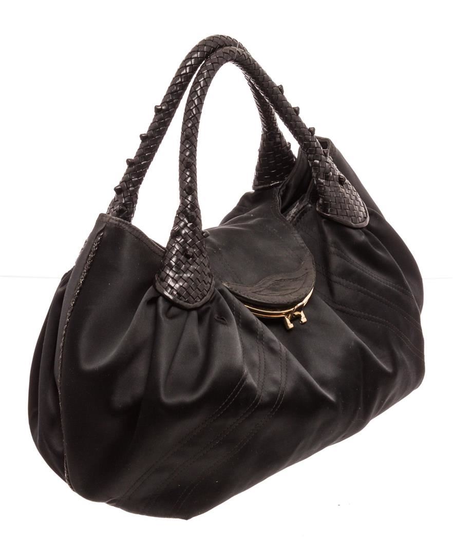Fendi Black Leather Spy Handbag. All available information is listed in the description and shown in the photos. Fendi Black Leather Spy Bag with gold-tone hardware, trim leather, leather lining, dual top handle and snap closure. 33138MEASUREMENTS: Length 10.5 in / 27 cm Width 18 in / 46 cm Height 4.5 in / 11 cm Condition: Pre-Owned Good overall, please see photographs for detail.