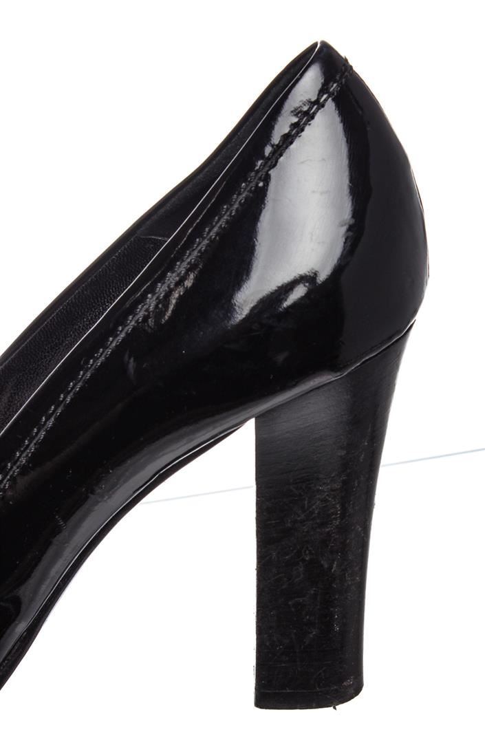 One Fendi Black Patent Leather Peep Toe Buckle Heels 36.5. Fendi black patent leather peep toes with faux buckle embellishment,."x" heel, designer..