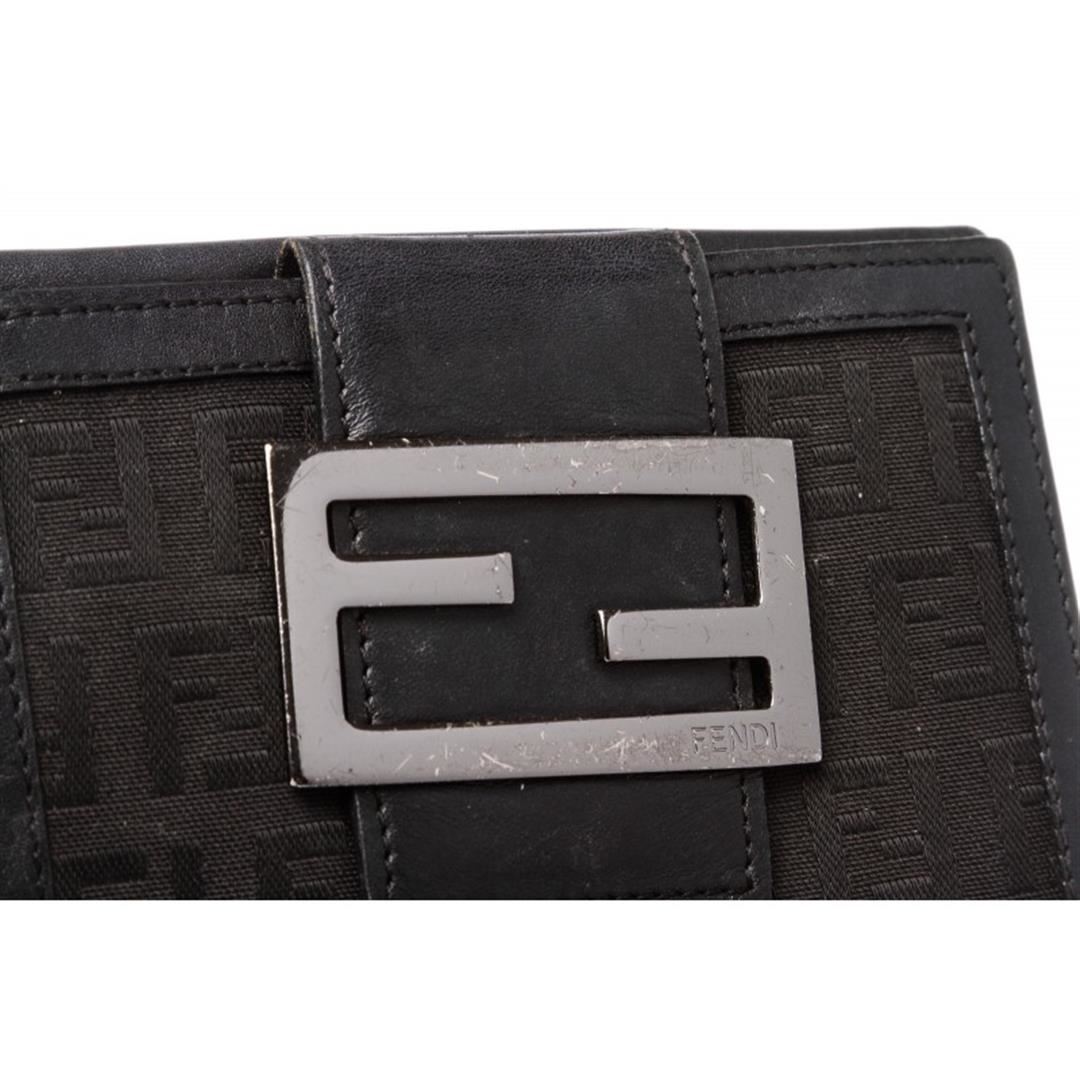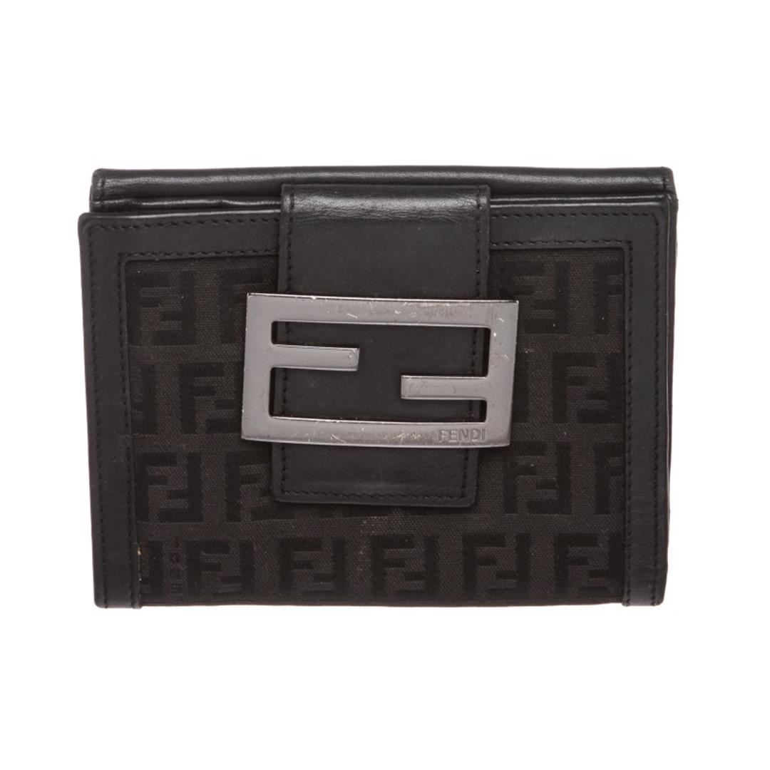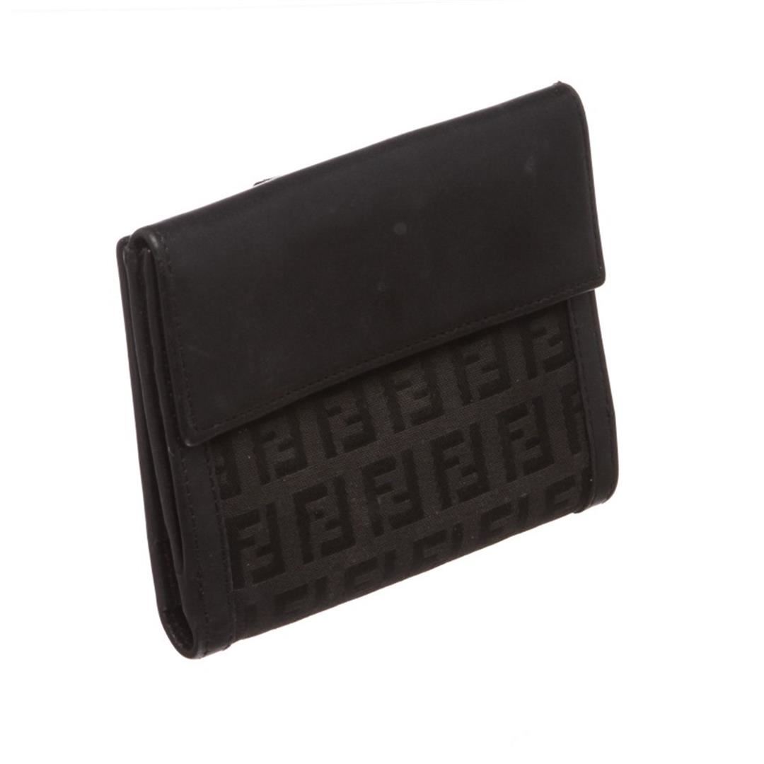 Overall push button closure. Interior contains multiple compartments, bill slip pocket, and one change snap closure pocket. Item is pre-owned. Item Dimensions: 5"x0.5"x4"/12.7cmx1.27cmx10.16cm.