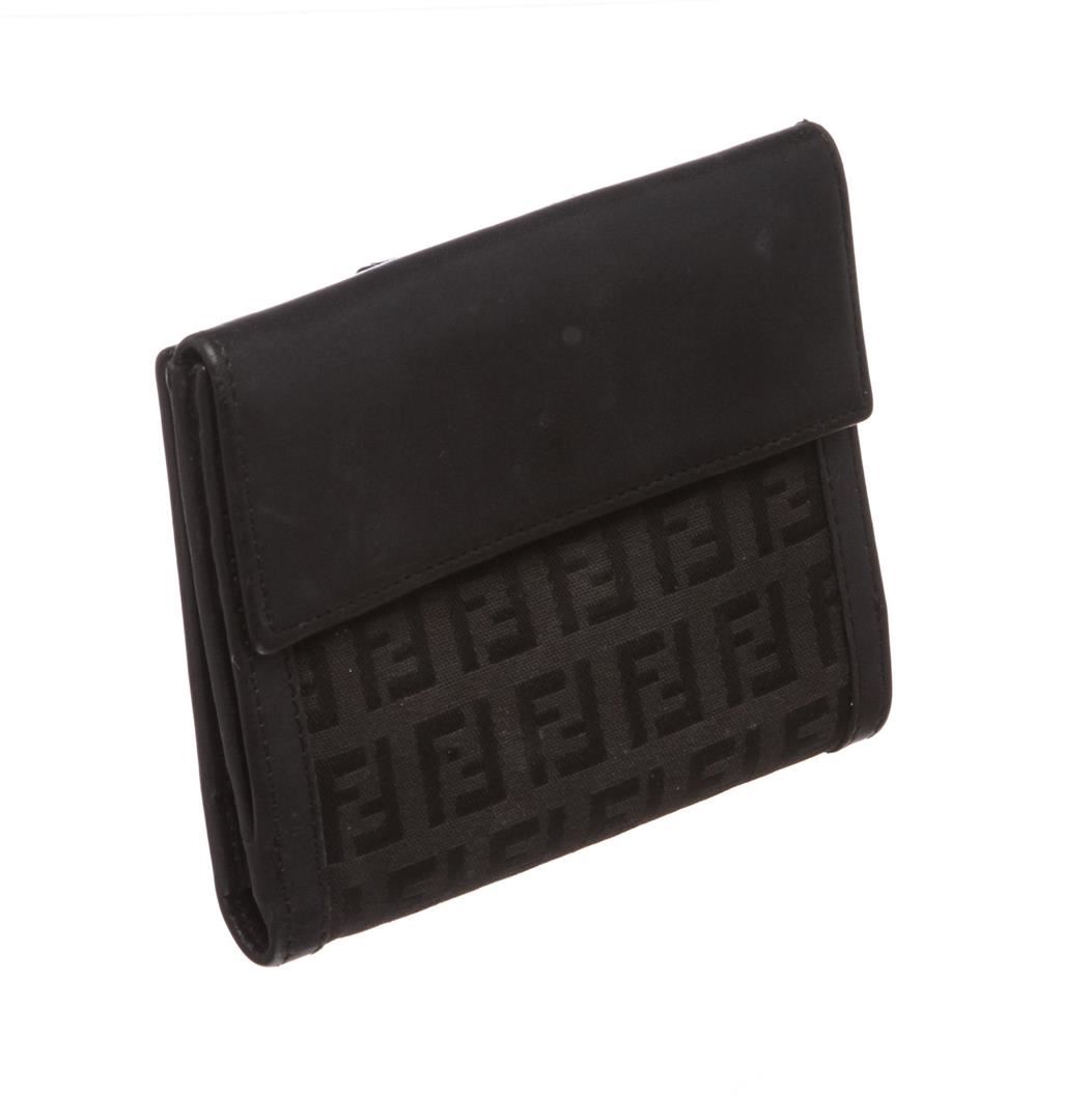Overall push button closure. Interior contains multiple compartments, bill slip pocket, and one change snap closure pocket.