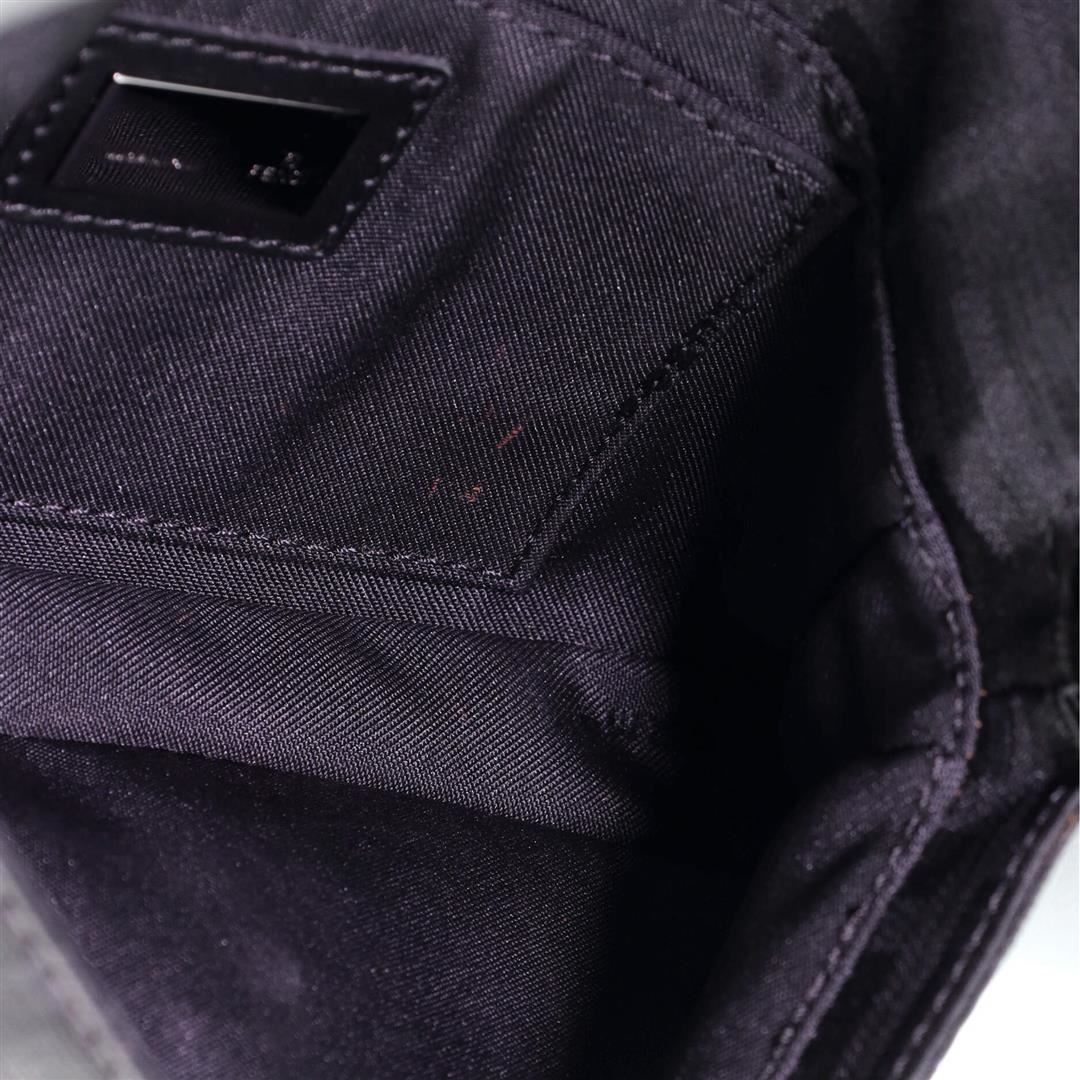 One Fendi Black Zucca Canvas Mini Baguette Shoulder Bag. Item is sold AS-IS. All available information is listed in the description and shown in the photo. Fendi Black Zucca Canvas Mini Baguette Shoulder Bag Condition Details: Minor wear on handle, cracking on handle wax edges, scratches on hardware. Measurements: Height 5", Width 7", Depth 1", Strap Drop -"