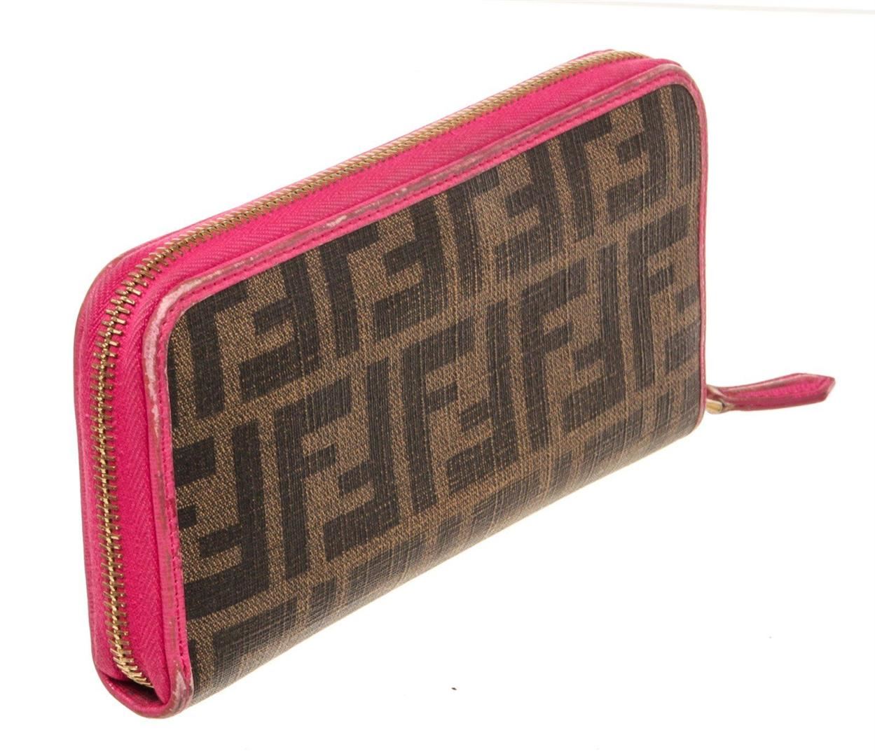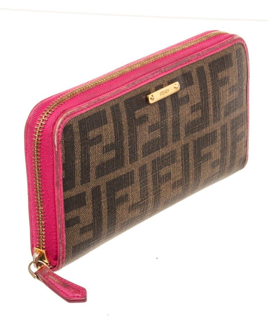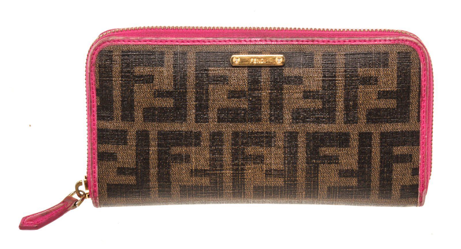 Fendi Brown Leather Zippy Wallet with leather, gold-tone hardware, interior three compartments pockets and zipper closure.