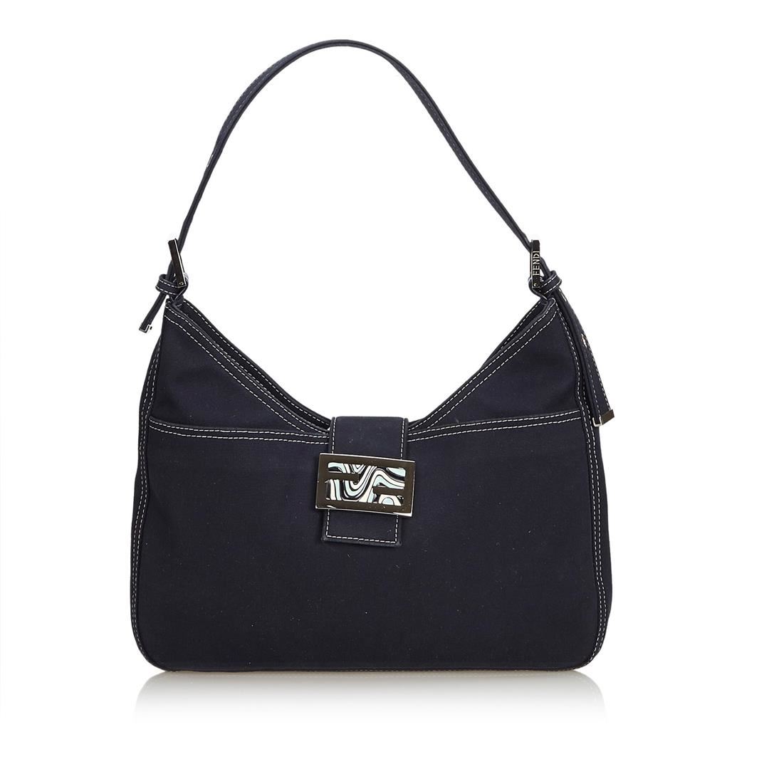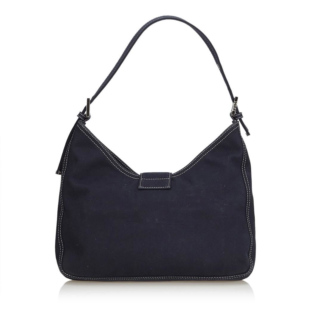 This shoulder bag features a denim body, front exterior slip pocket, flat adjustable shoulder strap, front flap with magnetic closure, and interior zip pocket.