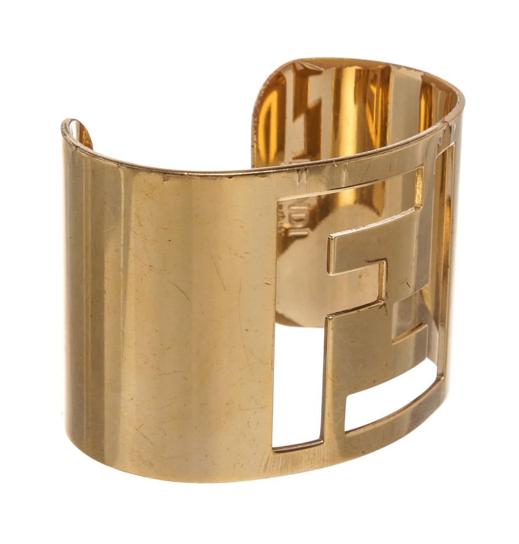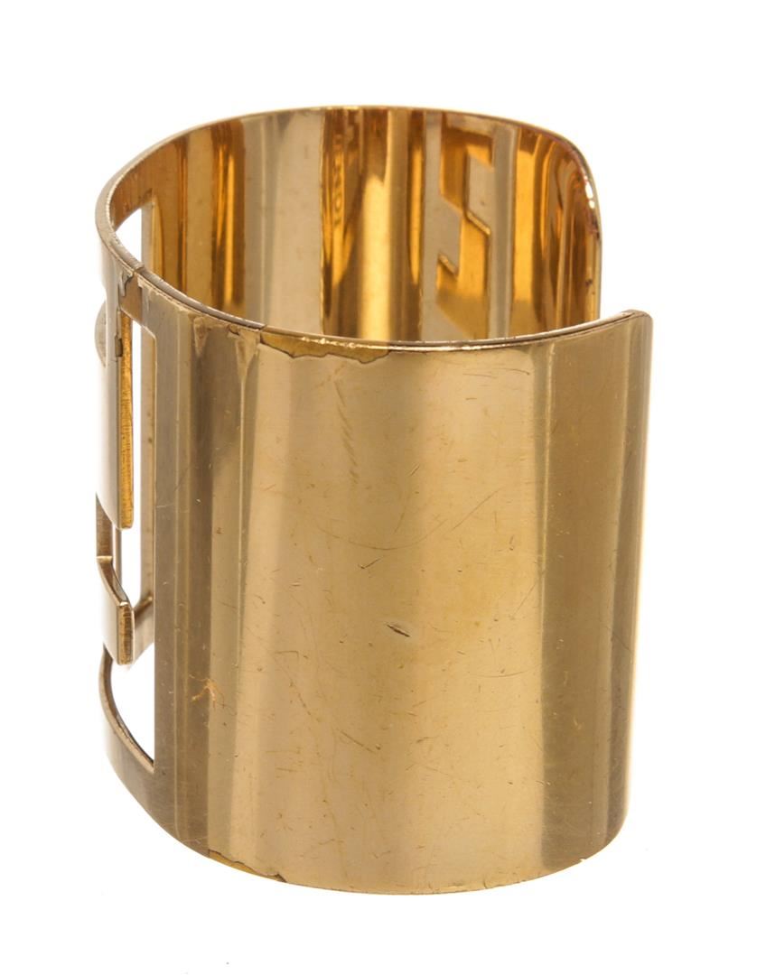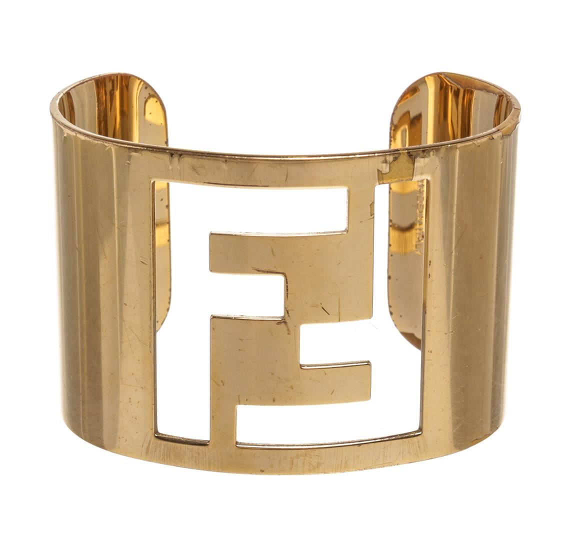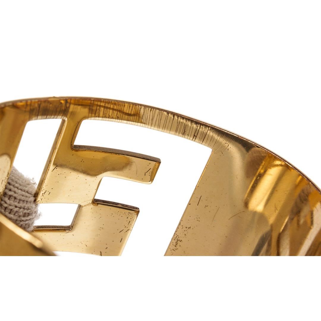 Crafted out of gold-tone metal, Fendi logo cut out at front. Please note normal scratches and metal chipping throughout.