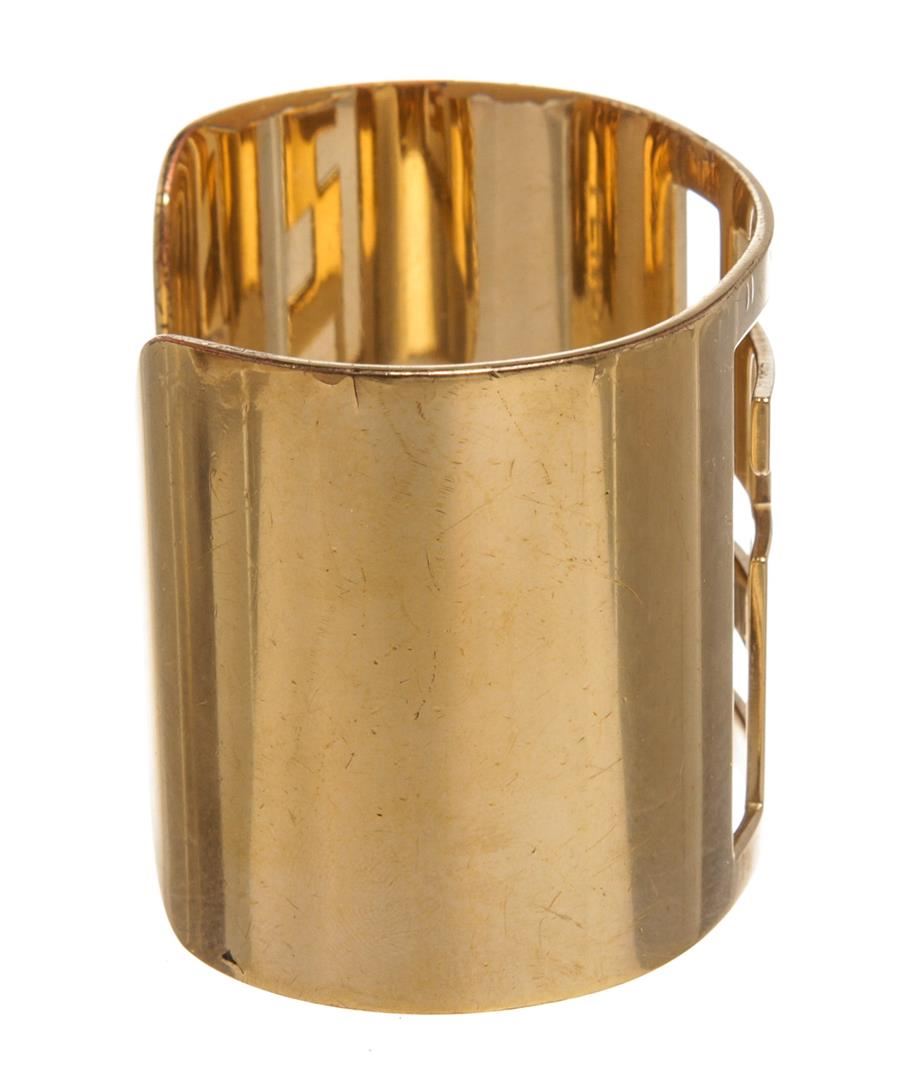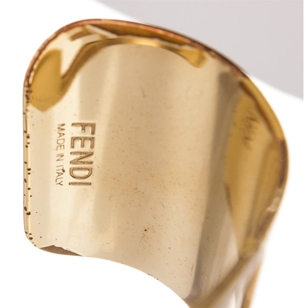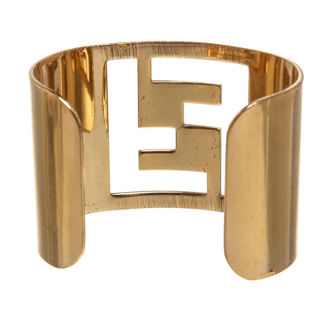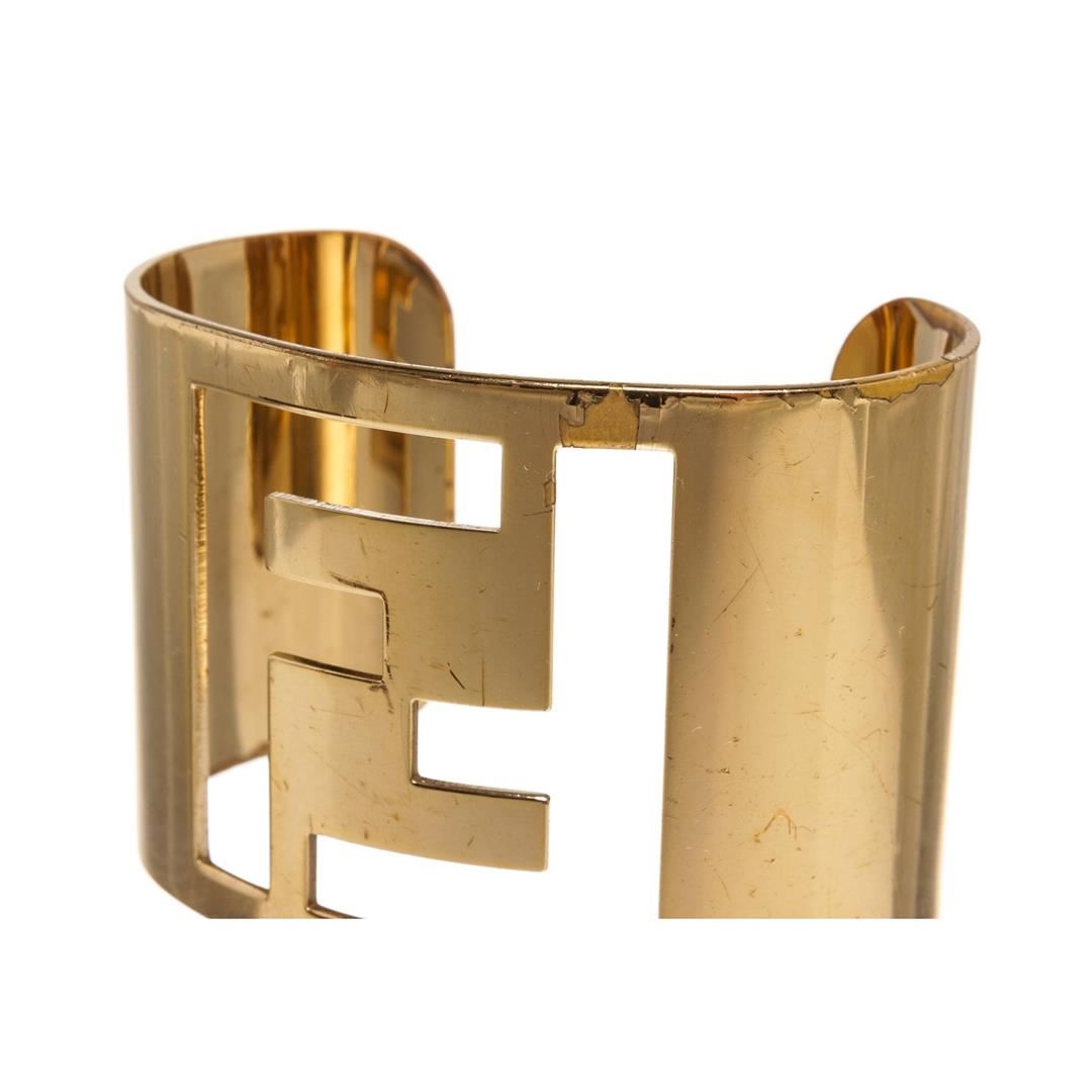 Crafted out of gold-tone metal, Fendi logo cut out at front. Please note normal scratches and metal chipping throughout.