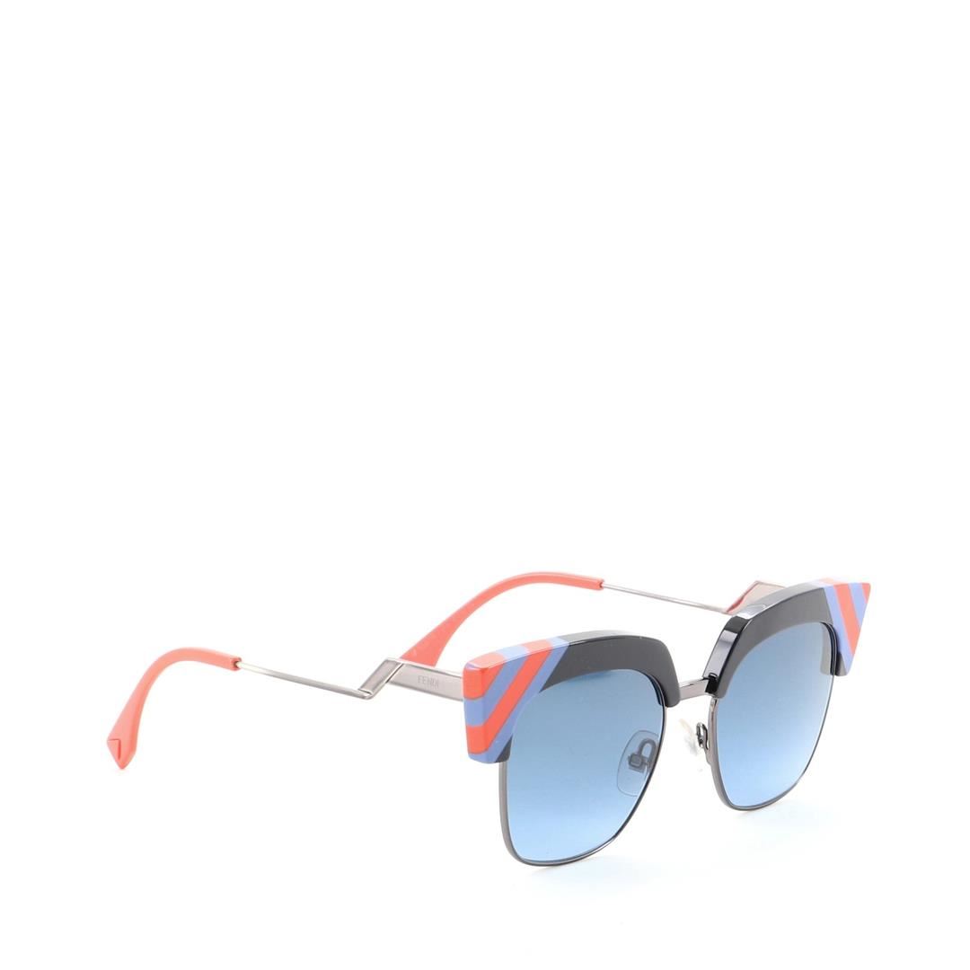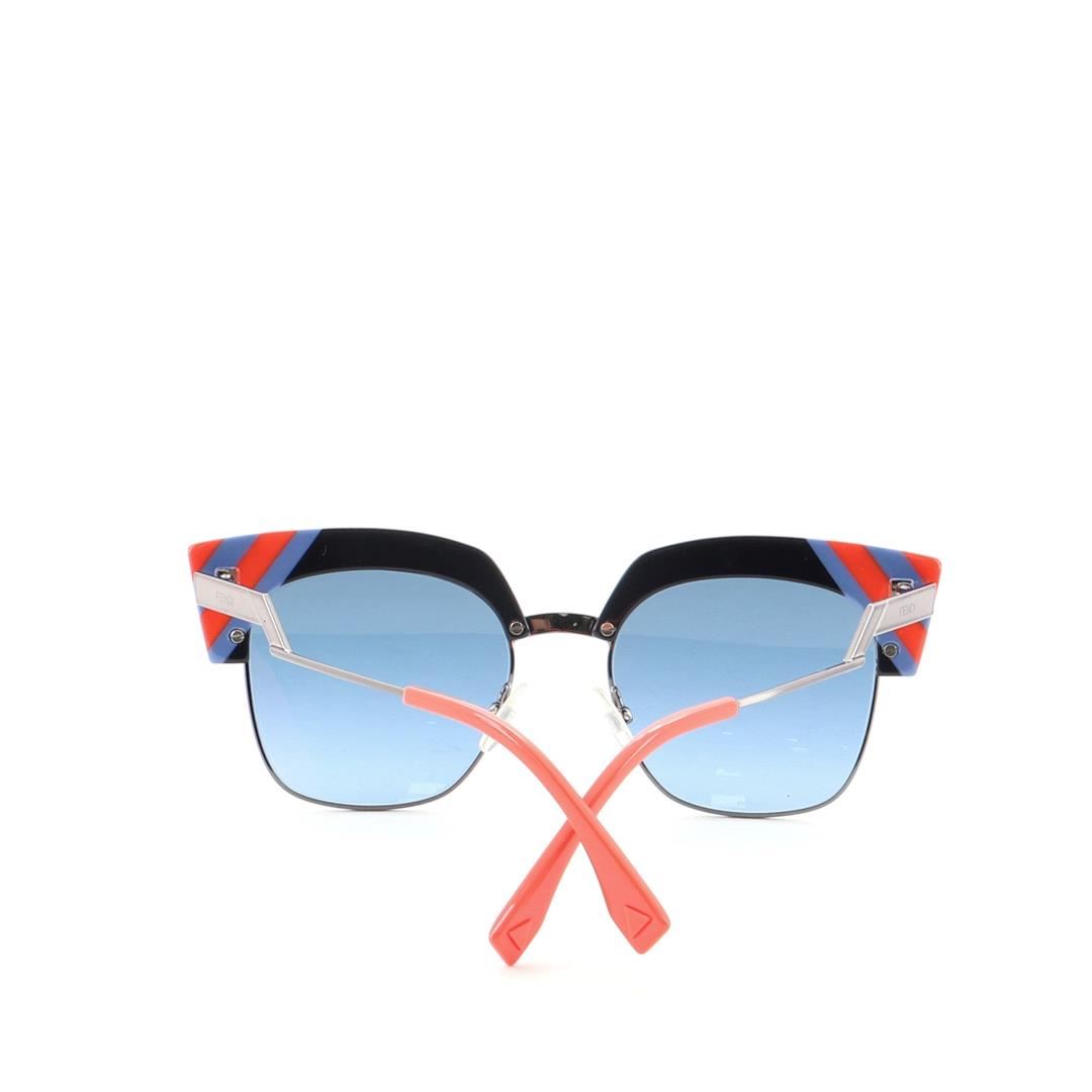 Fendi Iridia Round Sunglasses Metal Blue Condition Details: Light wear and scratches on temples. eight 2", Width 5.5", Depth ", Strap Drop None