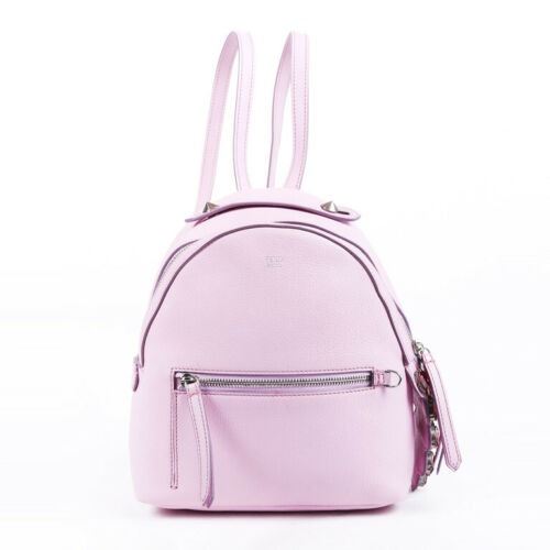 Description: Fendi mini By The Way leather backpack features silver tone hardware, adjustable straps, gemstone accents, front zip pocket, zip closure, and an interior with pockets and branded lining.