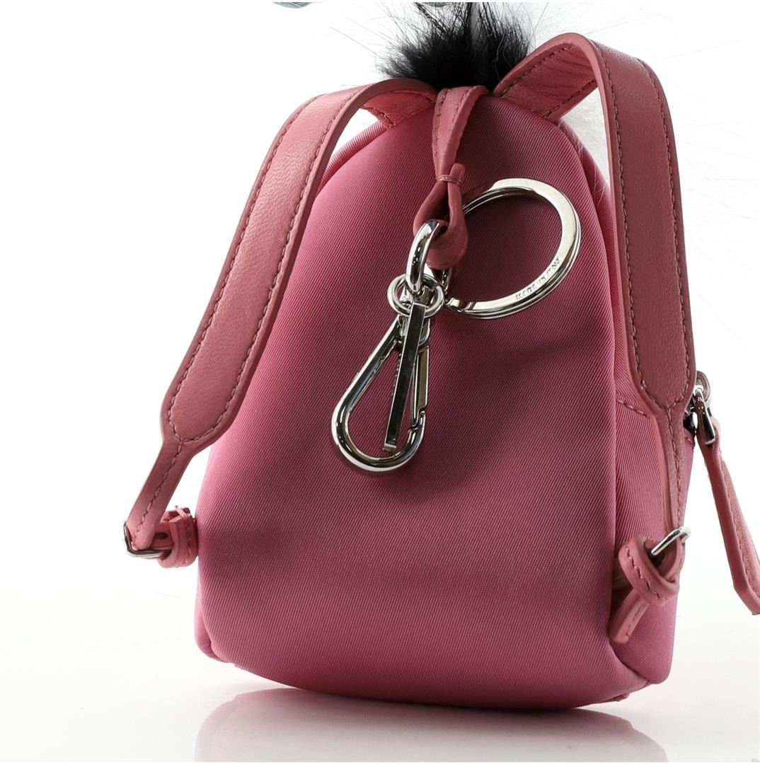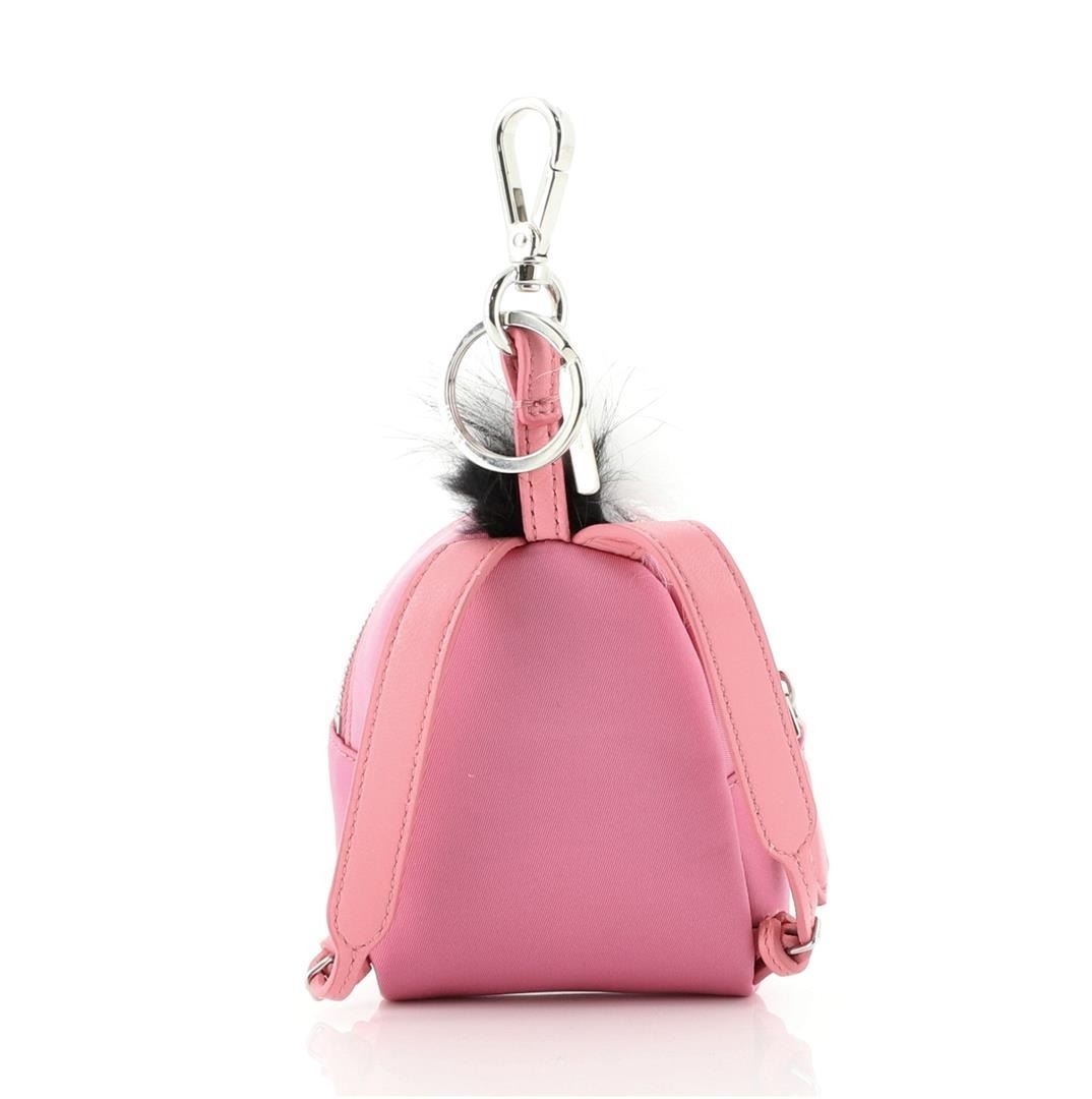Fendi Monster Backpack Bag Charm Nylon and Leather Micro Pink Condition Details: Scratches on hardware. Height 5", Width 3.5", Depth 1.5", Strap Drop 1.5