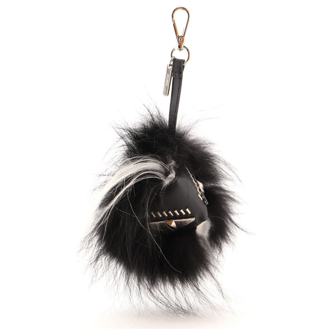 Fendi Monster Bug Bag Charm Fur with Leather Black Condition Details: Wear on exterior, scratches and slight tarnish on hardware. Height 9", Width 5.5", Depth 5.5", Strap Drop None