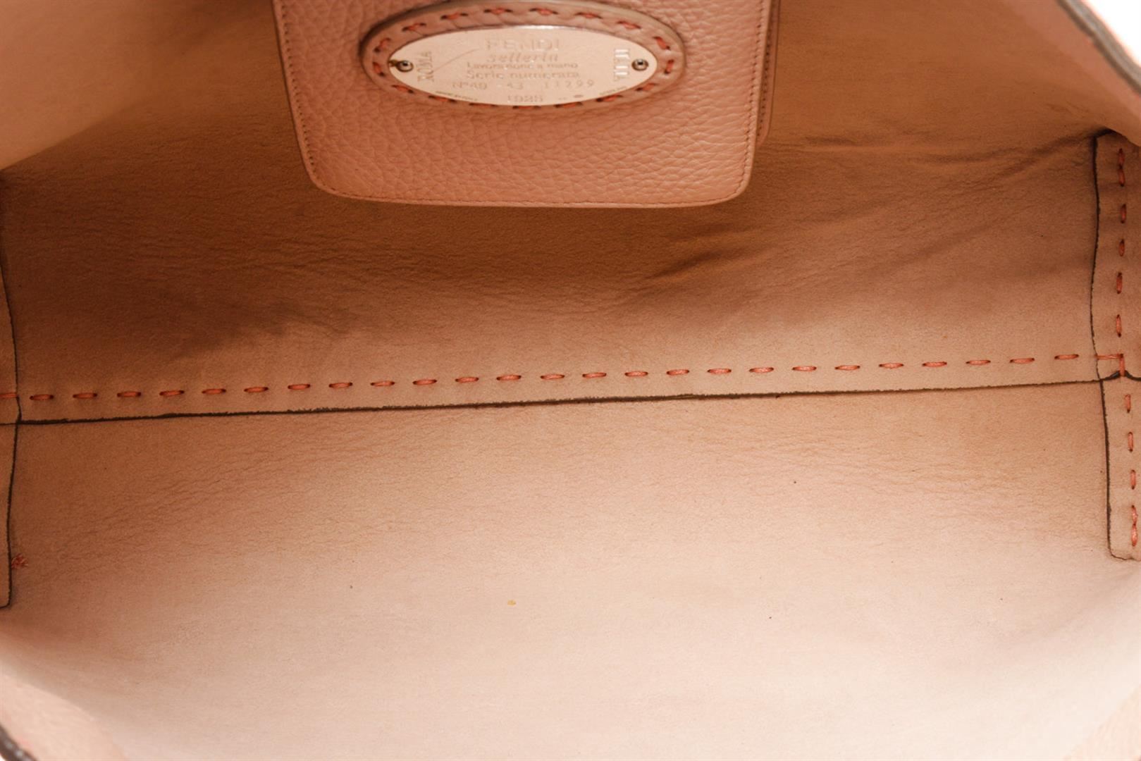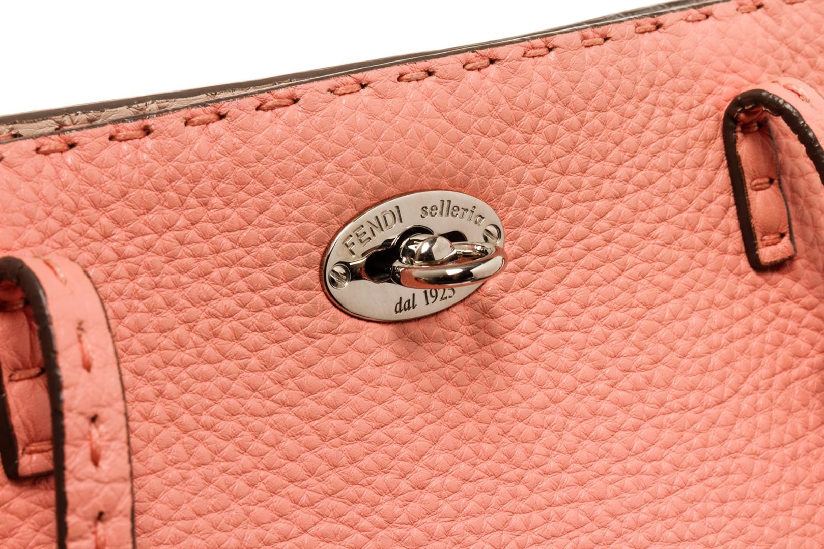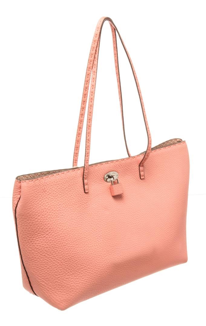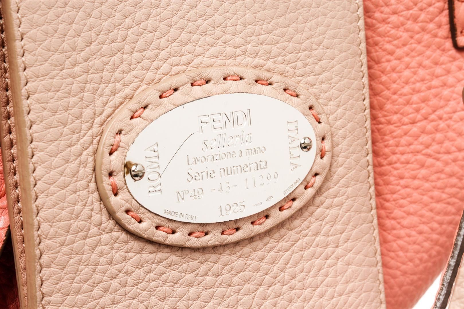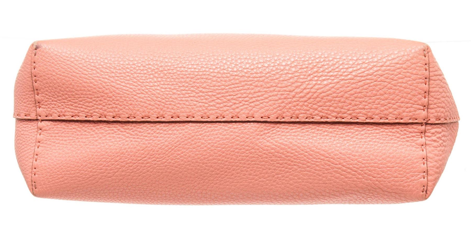 Fendi Pink Leather Selleria Tote Bag with gold-tone hardware, trim leather, shoulder strap and flap closure.