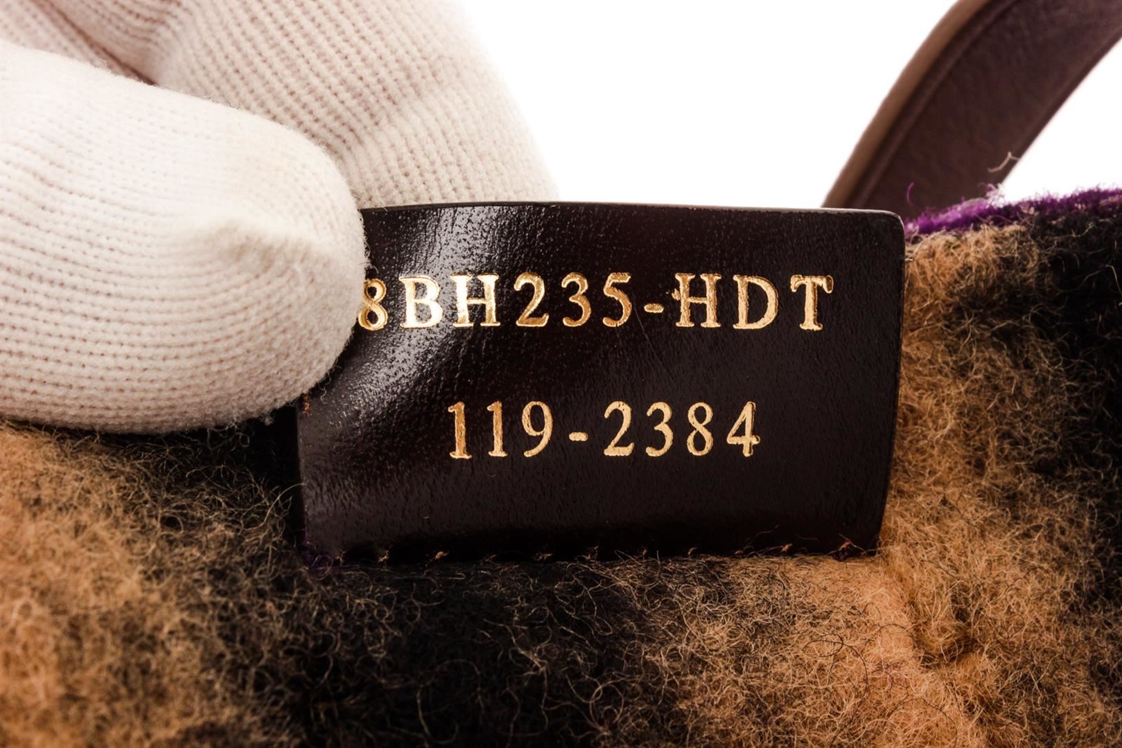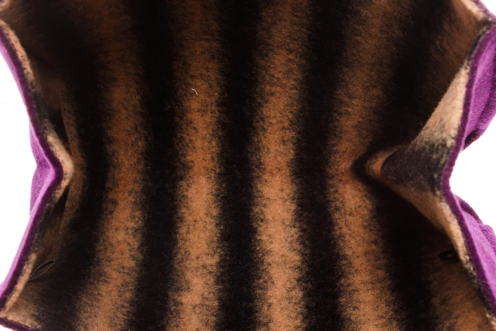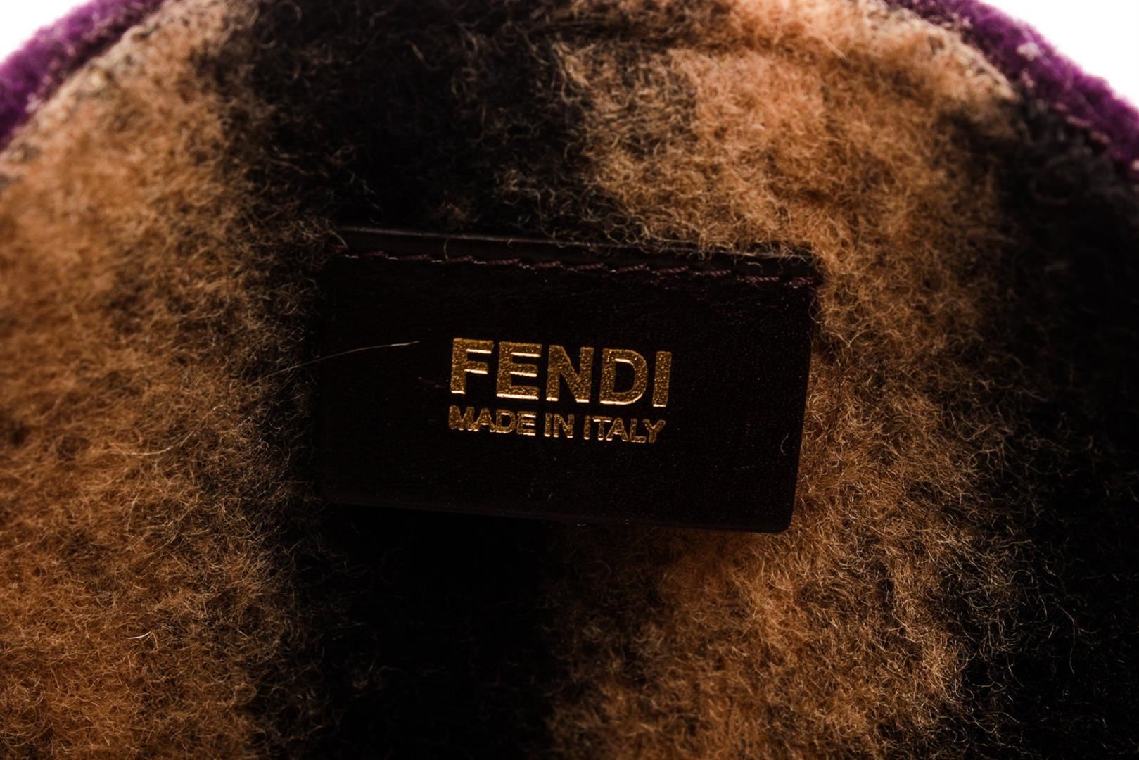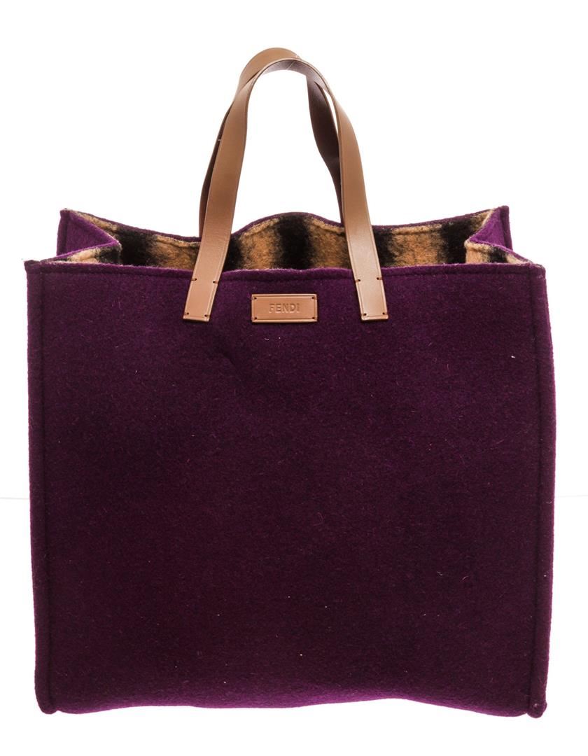 Fendi Purple Tote Bag with gold-tone hardware, trim leather, leather lining, dual top handle and flap closure.