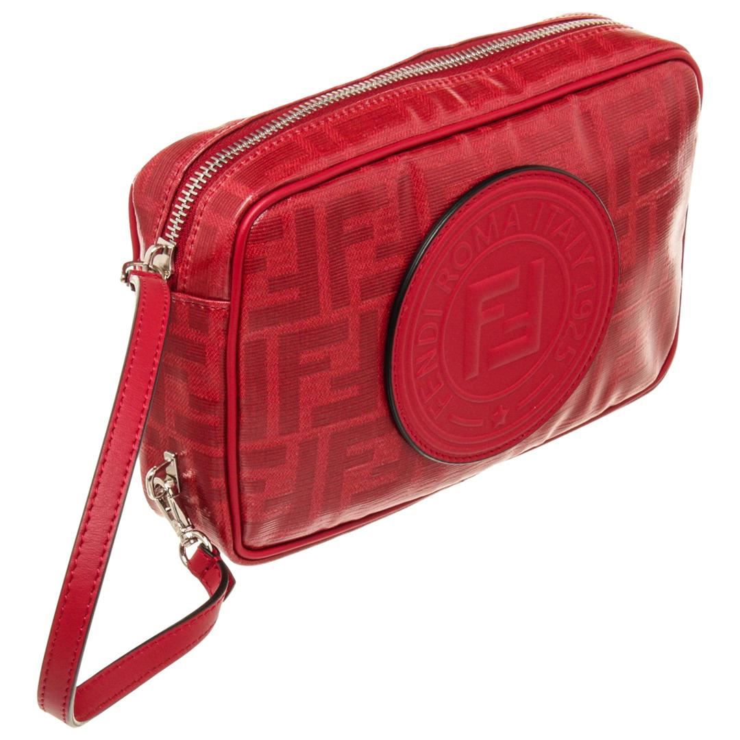 Fendi Red Leather FF Logo Stramp Crossbody Bag with leather, gold-tone hardware, trim leather, interior zip pockets, shoulder strap and flap closure.
