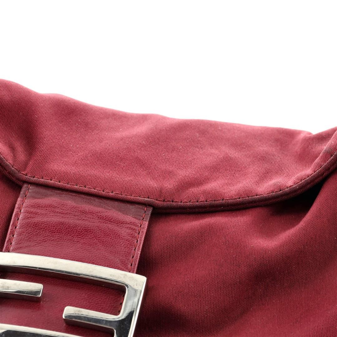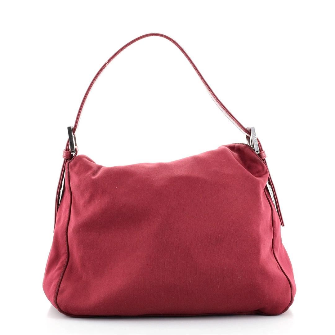 Fendi Red Neoprene Double Medium Flap Bag Condition Details: Heavy darkening and wear on exterior edges, moderate discoloration and scuffs on handle. Darkening on closure trim. Stains and wear on exterior, scratches on hardware. MMeasurements: H