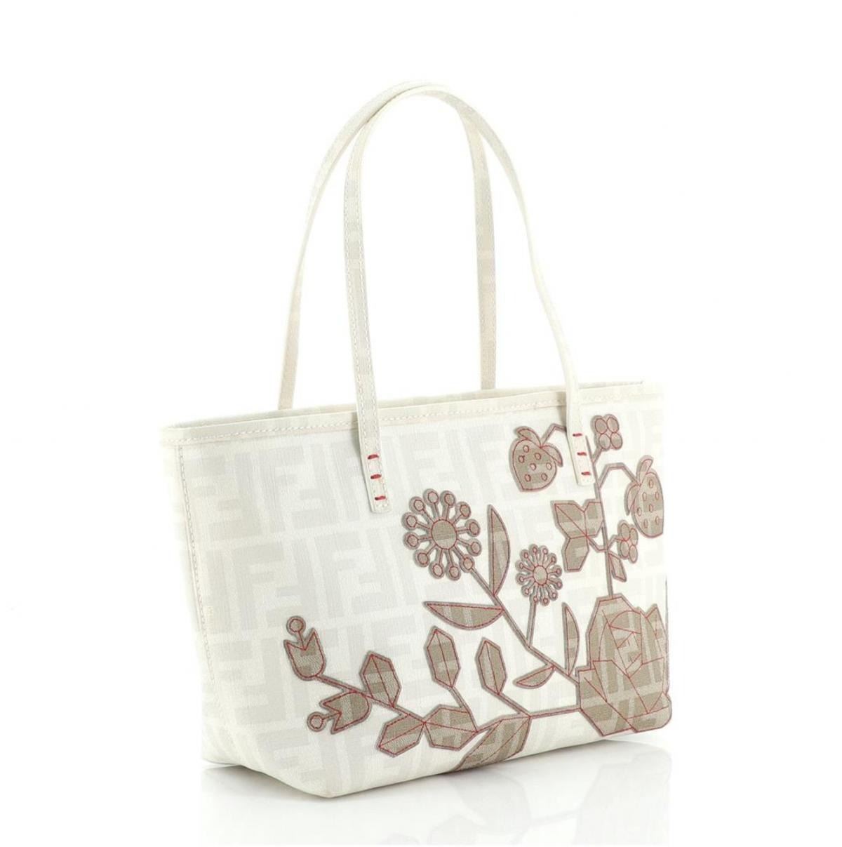 Fendi Roll tote Zucca Embroidered Canvas Mini Neutral, Red, White