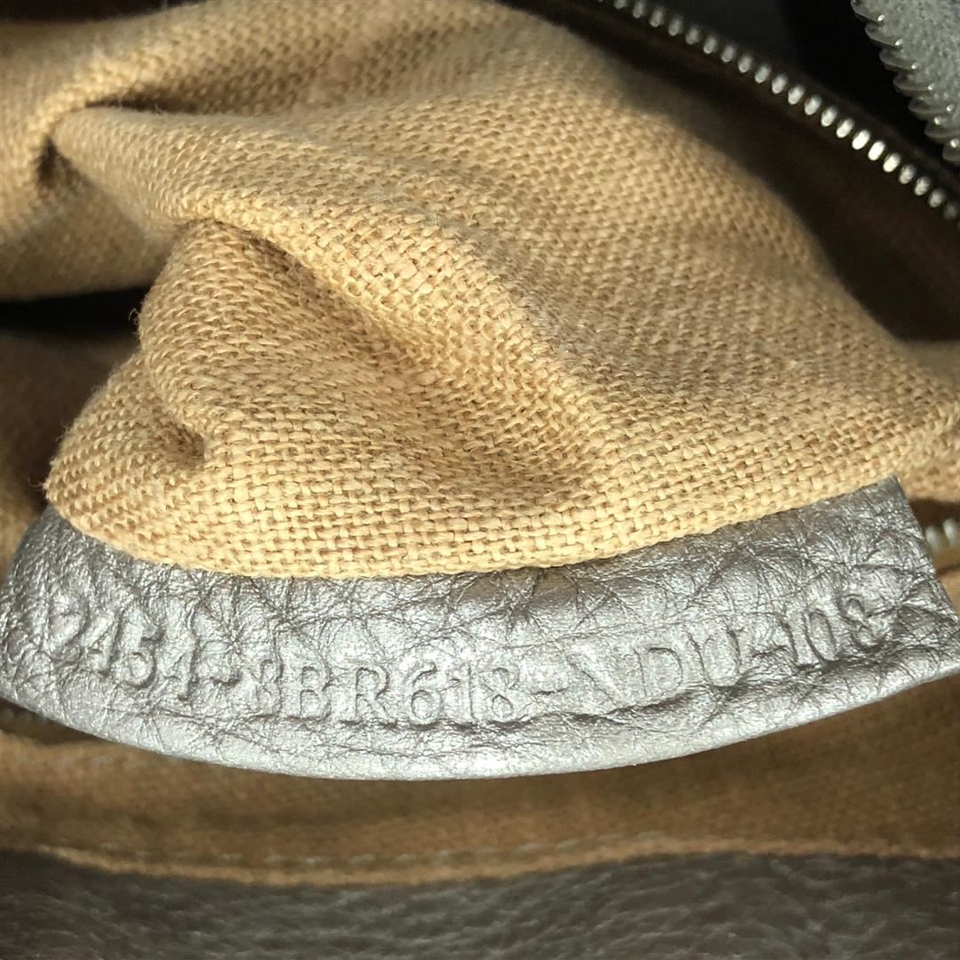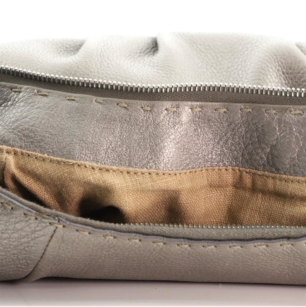 Fendi Selleria Chain Hobo Leather Small Silver Condition Details: Heavy splitting and cracking on strap and opening trim wax edges. Minor wear and scuffs on exterior, glue stains on opening trim, scratches on hardware. Height ", Width ", Depth