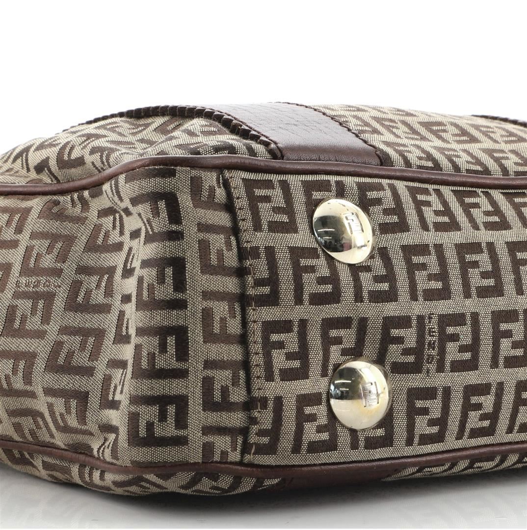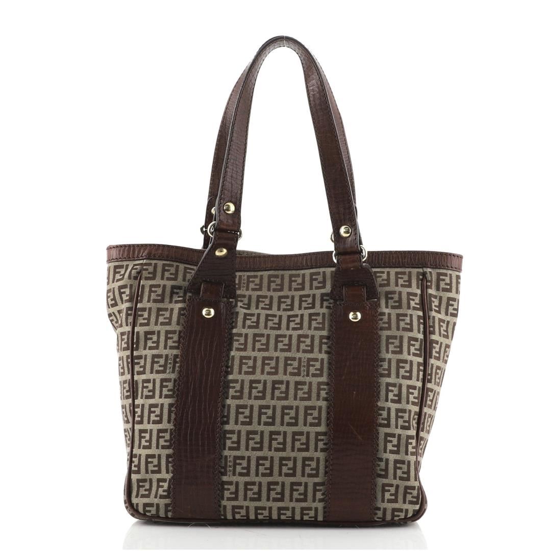 Fendi Vintage Brown Zucchinno Canvas Zip Medium Tote Bag Condition Details: Wear on base corners, creasing on exterior, moderate scuffs on leather trims, Heavy cracking and splitting handle wax edges, scratches and discoloration on hardware. MMe