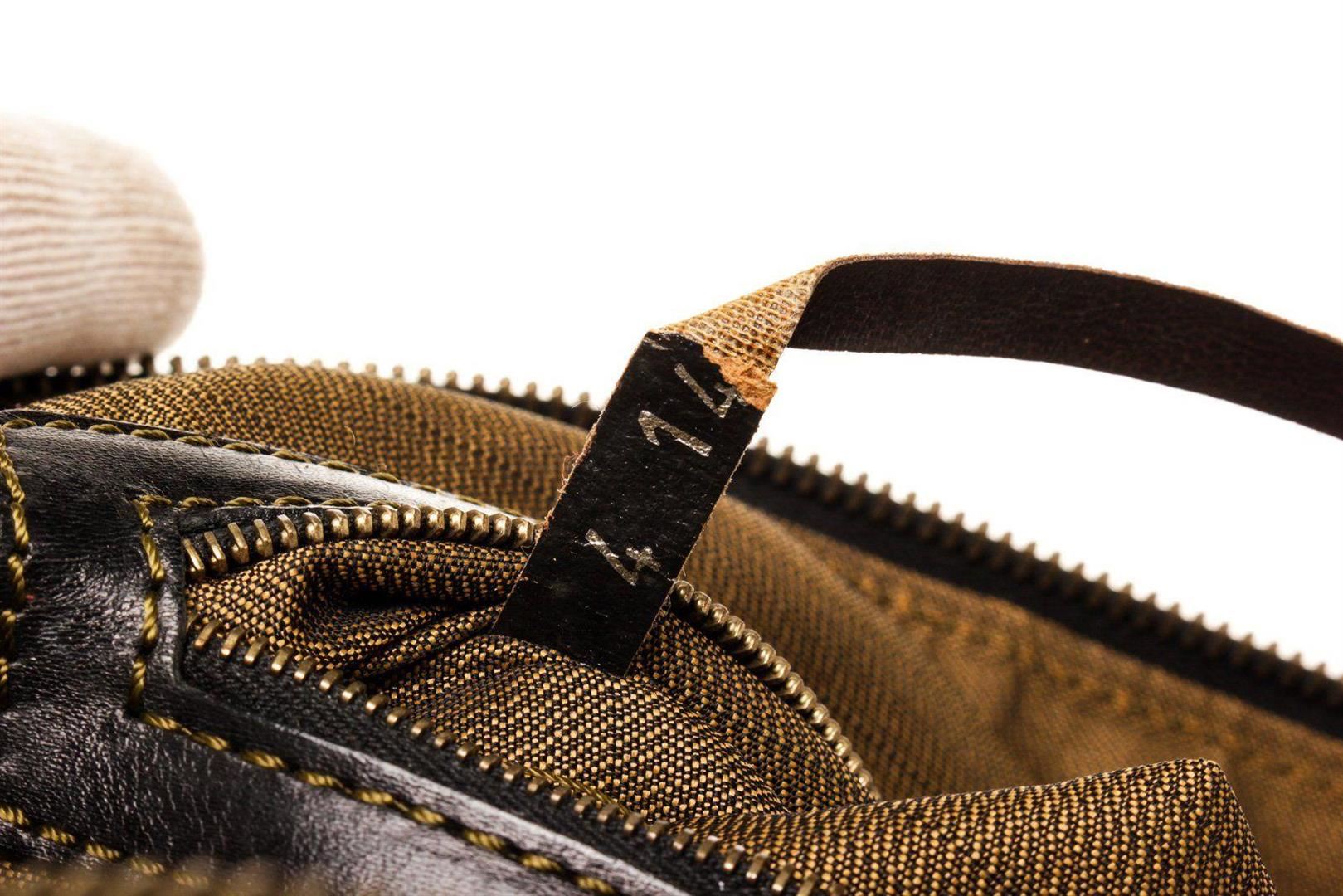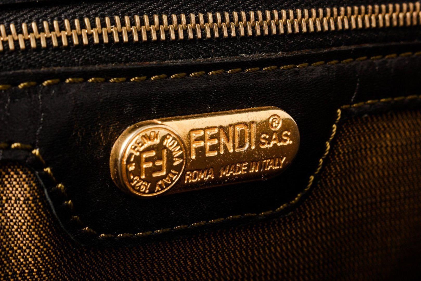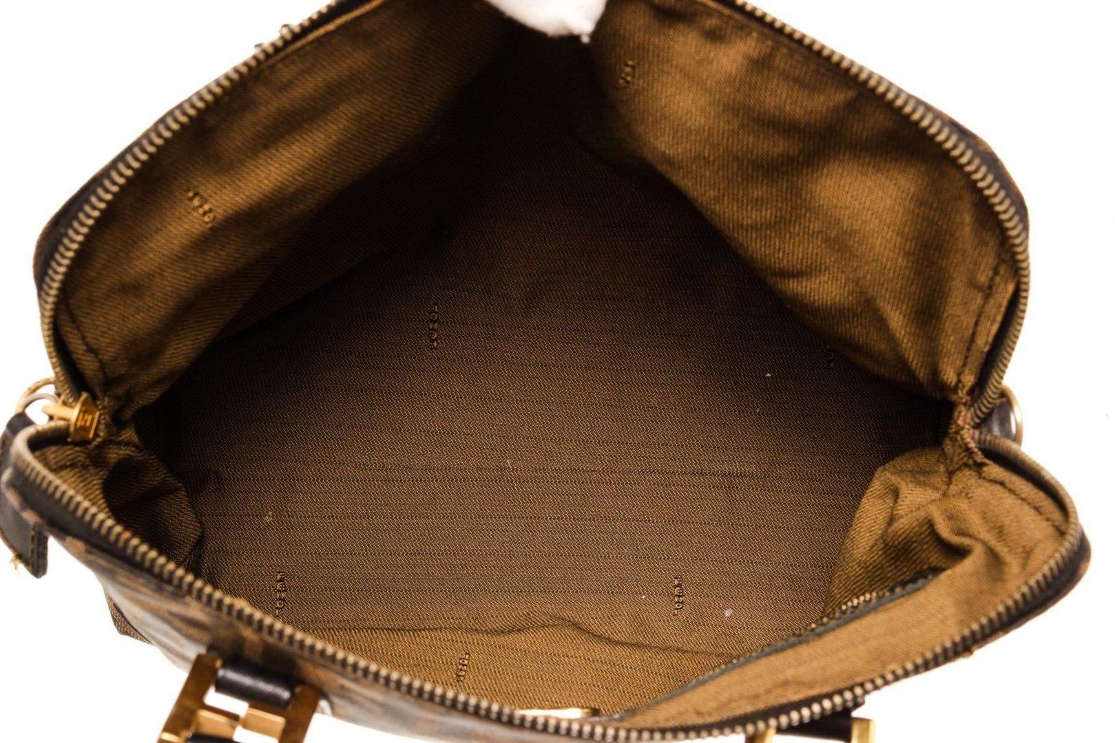 Fendi Zucca Logo Brown Shoulder Bag with material canvas, gold-tone hardware, interior zip pocket, Dual top handles and Zipper closure.