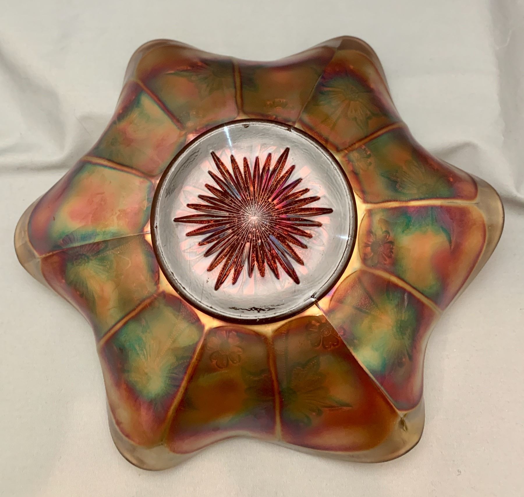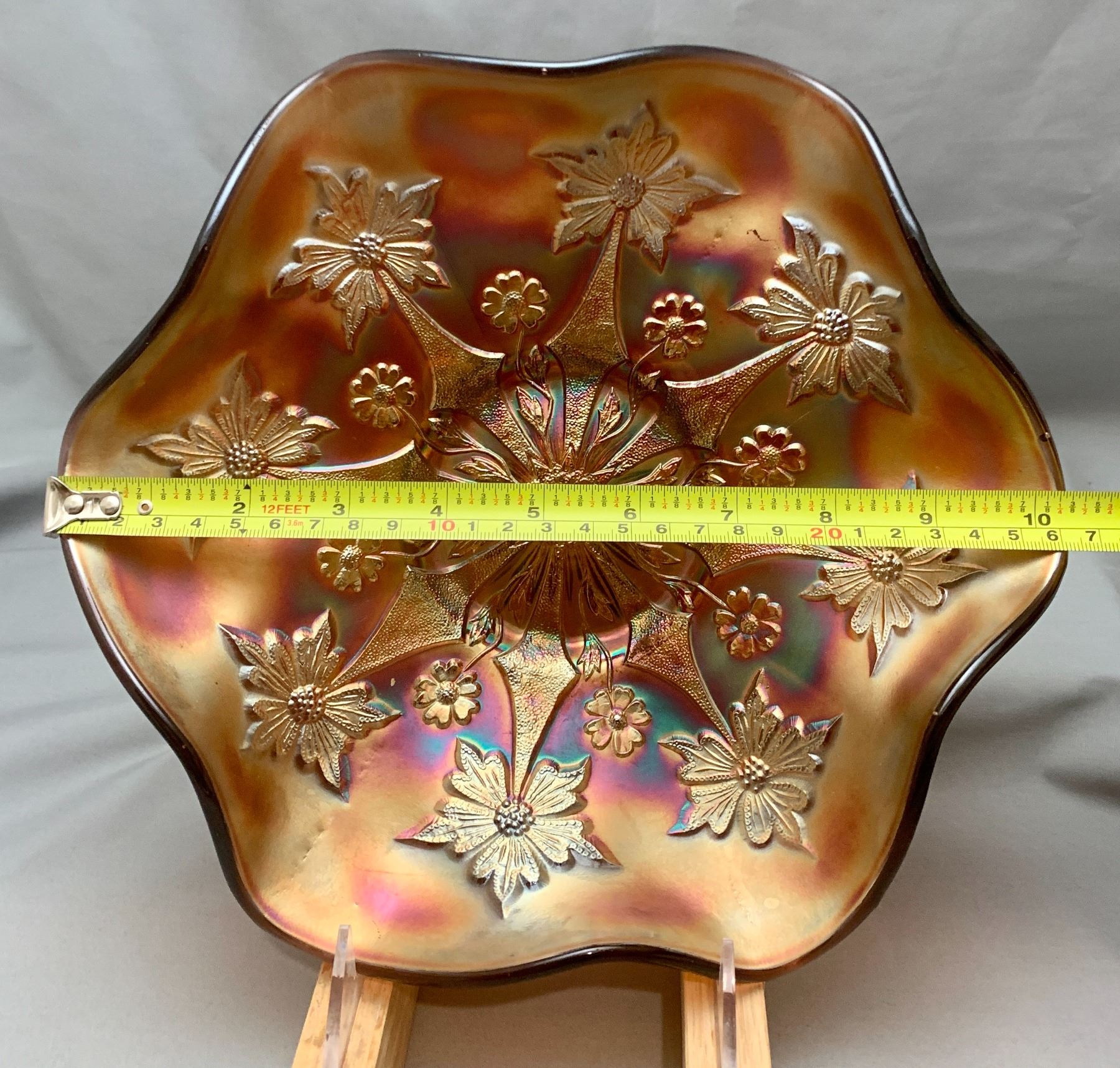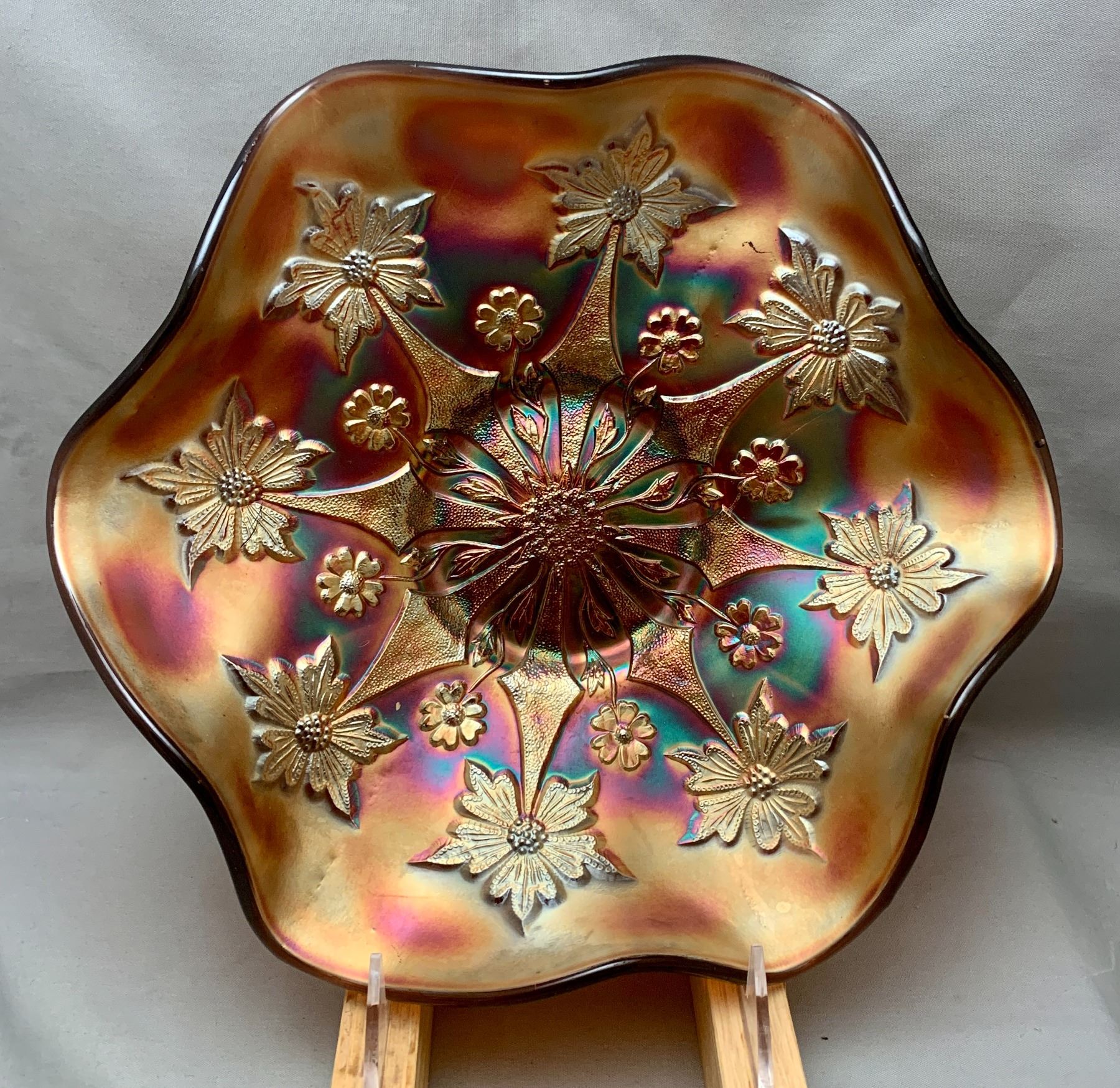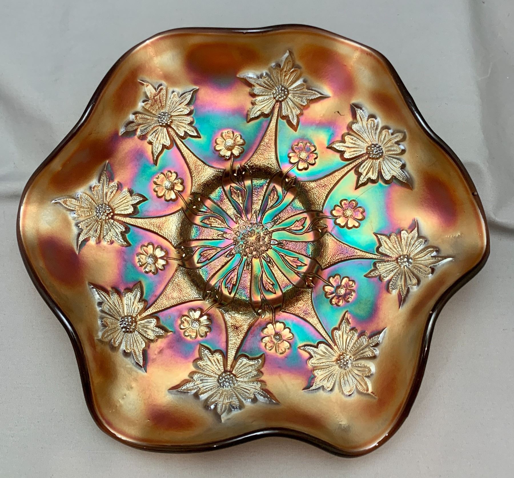 Fenton Amethyst Carnival Glass "Two Flowers" 6-Ruffle Master Berry Bowl. Rare Size at 10 1/2"! Circa 1907