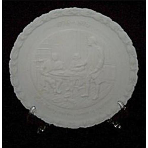 This Fenton plate was one of a series to commemorate the bi-centennial in 1976. The second in the  series was a depiction of the signing of The Declaration of Independence, by such dignitaries as Benjamin Franklin, Thomas Jefferson and John Adams. This plate is MNB in beautiful milk glass... Order three of anything that can be shipped in one container, pay with PayPal and shipping is FREE!