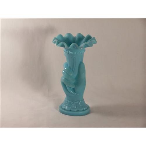 <tr><td>Title:Fenton Blue Opalescent Hand Vase</td></tr>