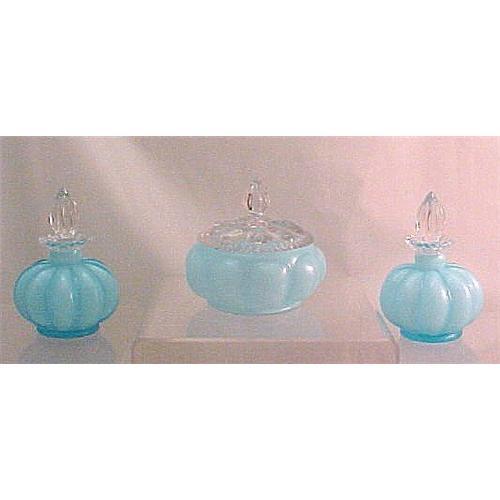 <tr><td>Title:Fenton Blue Overlay Melon Perfume Vanity Set</td></tr>