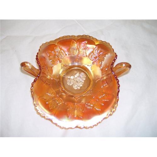 Fenton Butterfly Card Tray Varient- from Bon Bon Bowl 2.5 x 7.0 x 7.25 Marigold. Very Good Condition.
