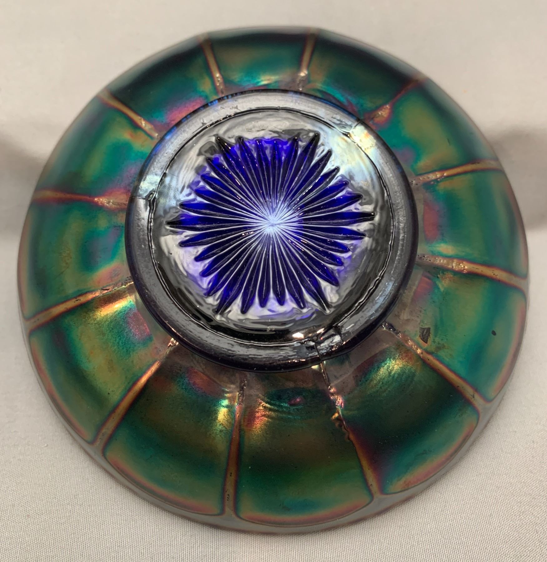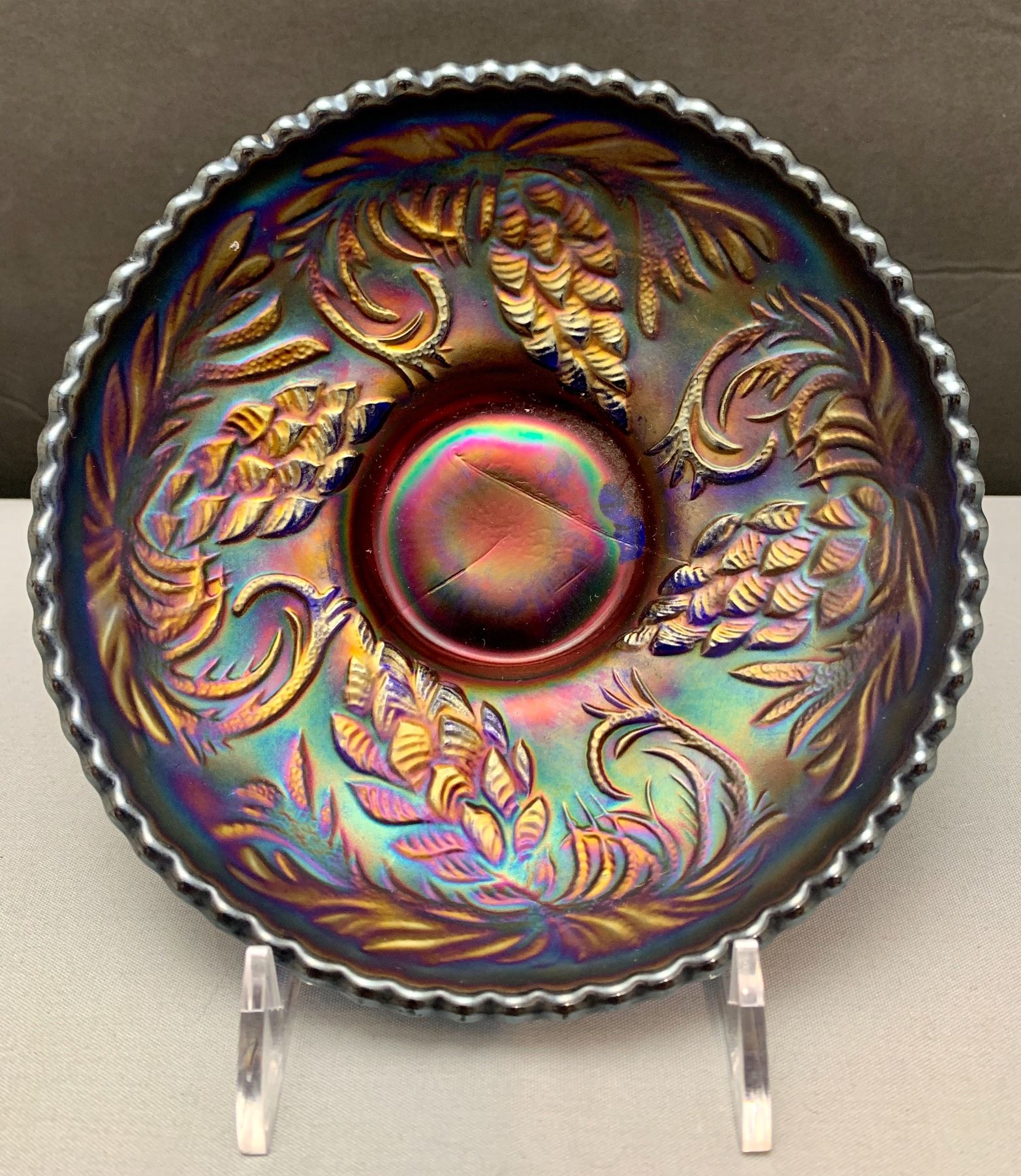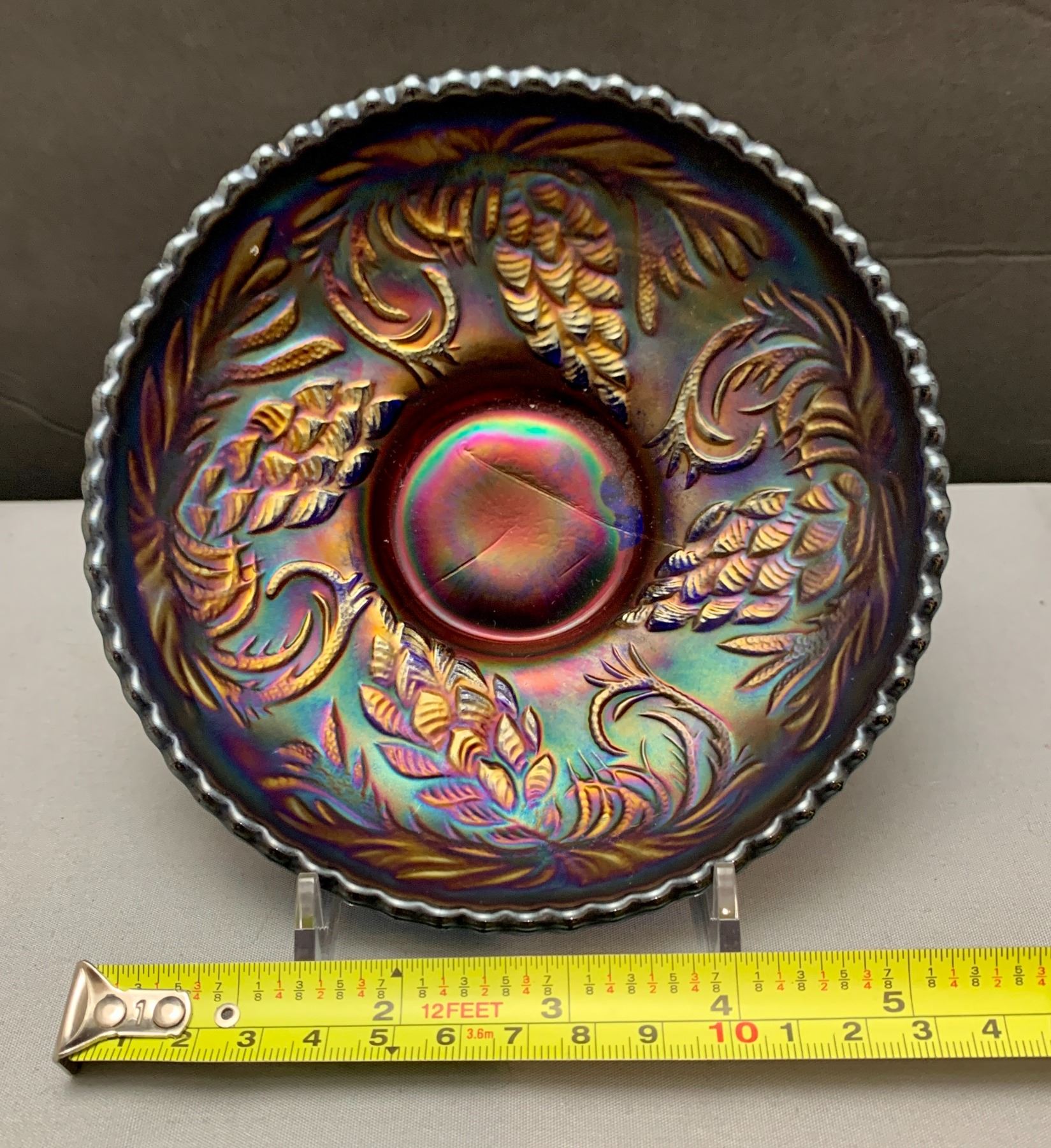 Fenton Cobalt Blue “Fir Cones” 5 1/2” Carnival Glass Ice Cream Bowl - Rare Pattern!
