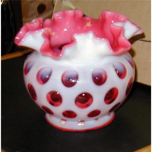 <tr><td>Title:Fenton Coin Dot Cranberry Bowl Vase</td></tr>