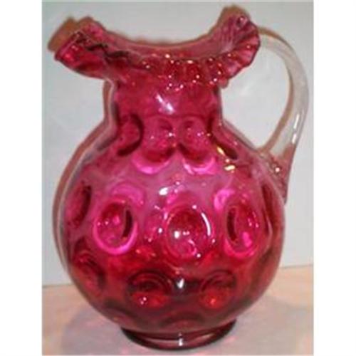 <tr><td>Title:Fenton Cranberry Thumbprint Ruffled Pitcher</td></tr>