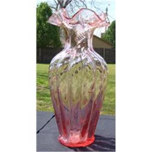 Offered for your consideration is this lovely Fenton Art Glass Twisted Ruffle Edge Cranberry Vase. It measures 11" tall and is in mint condition. The Original price tag is still on the bottom. A wonderful addition to your collection.