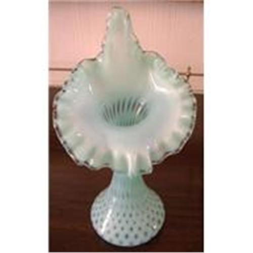 Soft Blue Fenton Fine Dot Tulip Vase highly over exaggerated with wonderful shape and well defined dots. Gorgeous!