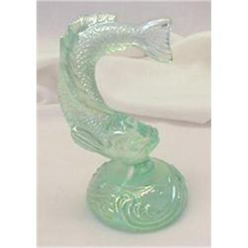 Fenton Fish Paperweight in Willow Green Opalescent Carnival. Signed Fenton. 5" x 2 1/2". Mint condition.