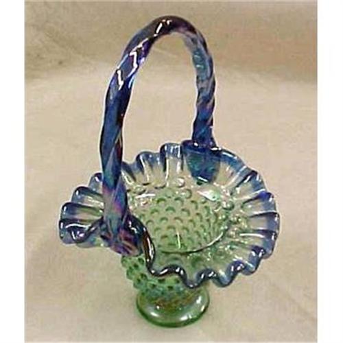 Fenton Green Pebble Basket with Blue Handle. The green is prettier than in picture. Buyer pays shipping and handling costs.