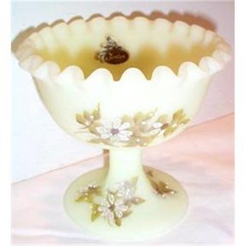 <tr><td>Title:Fenton Hand Painted Custard Scalloped Compote</td></tr>