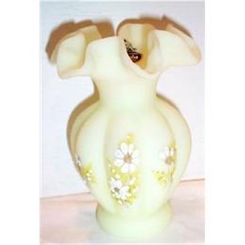 <tr><td>Title:Fenton Hand Painted Custard Short Ruffled Vase</td></tr>