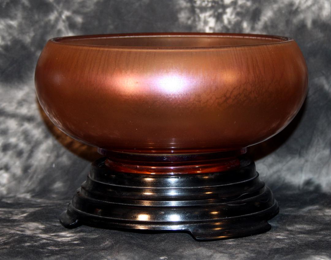 Iridescent Glass Console Bowl on Glass Plinth, Unmarked - Probably Fenton. Excellent condition. 7.5" wide, 5.25" (Bowl on plinth)