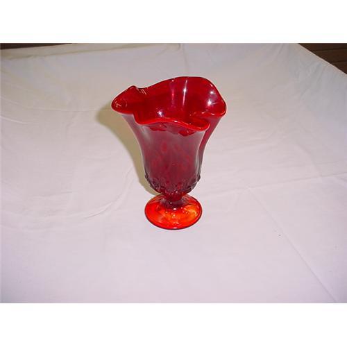 This is a very attractive ruby red Fenton lily vase. The diameter of the bottom is 2 3/4 inches. It is in perfect condition; no chips, cracks, or scratches.