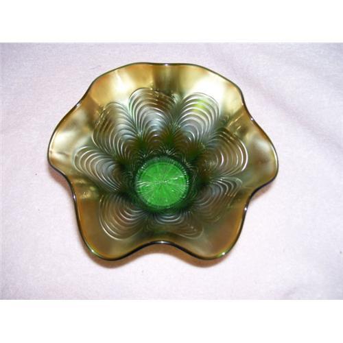 <tr><td><font size="2" face="Arial, Helvetica, sans-serif"><strong><font color="#000033">Title:</font></strong>Fenton Peacock Tail Ruffled Hat Bowl </font></td></tr>