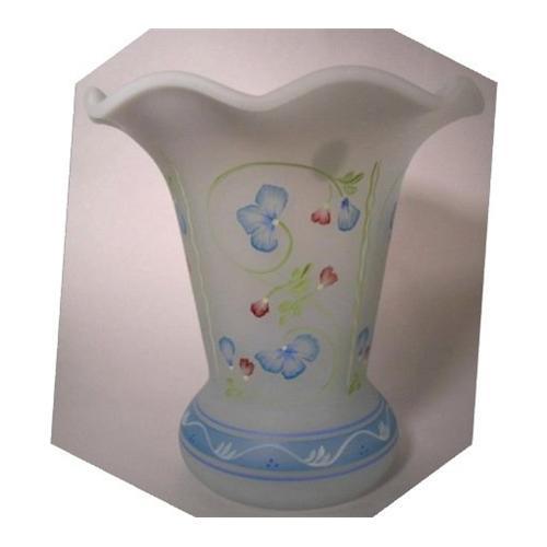 Fenton's Swedish Period Heirloom Collection vase based on the design of Stacey Williams and painted artistry of K. Brightbill, Limited and Numbered Edition #513 of 850.<p>Vase is airy, delicate in tone and true to the Gustavian influence design style of the Swedish Period 1771 - 1792. Semi-translucent French Opalescent treatment gives it a glowing softness and is substantial in size measuring 11 inches high with a 6.5 inch diameter. Neoclassism shape with a soft crimp scallop rim and painted with delicate vertical floral patterns and floral scroll on base.<p>Marked with script 'F', Fenton egg shaped foil label and artist's signature. QVC certification of authenticity, QVC #C67614-0, Fenton # CV358 FK. Immaculate condition, without original box.
