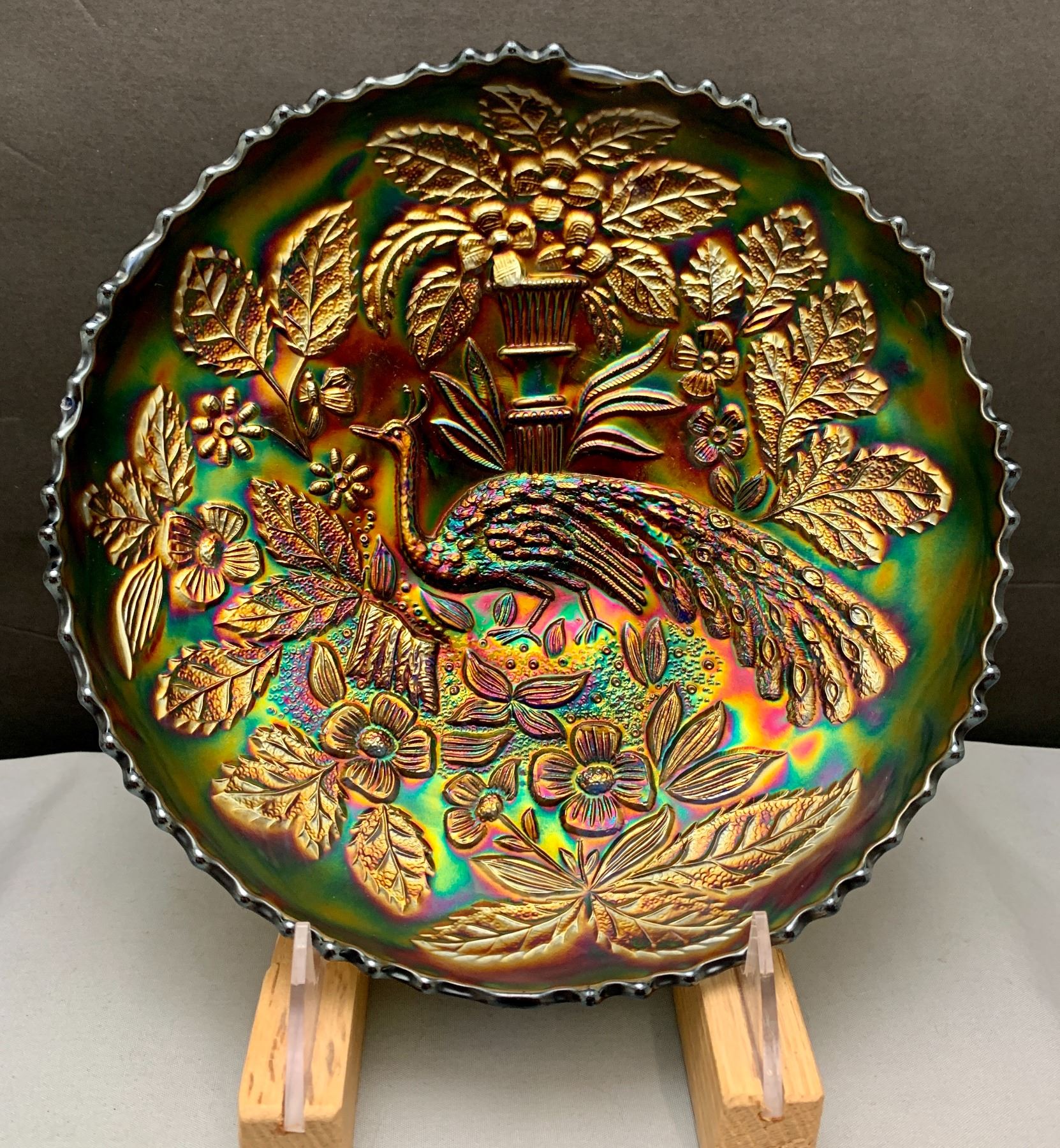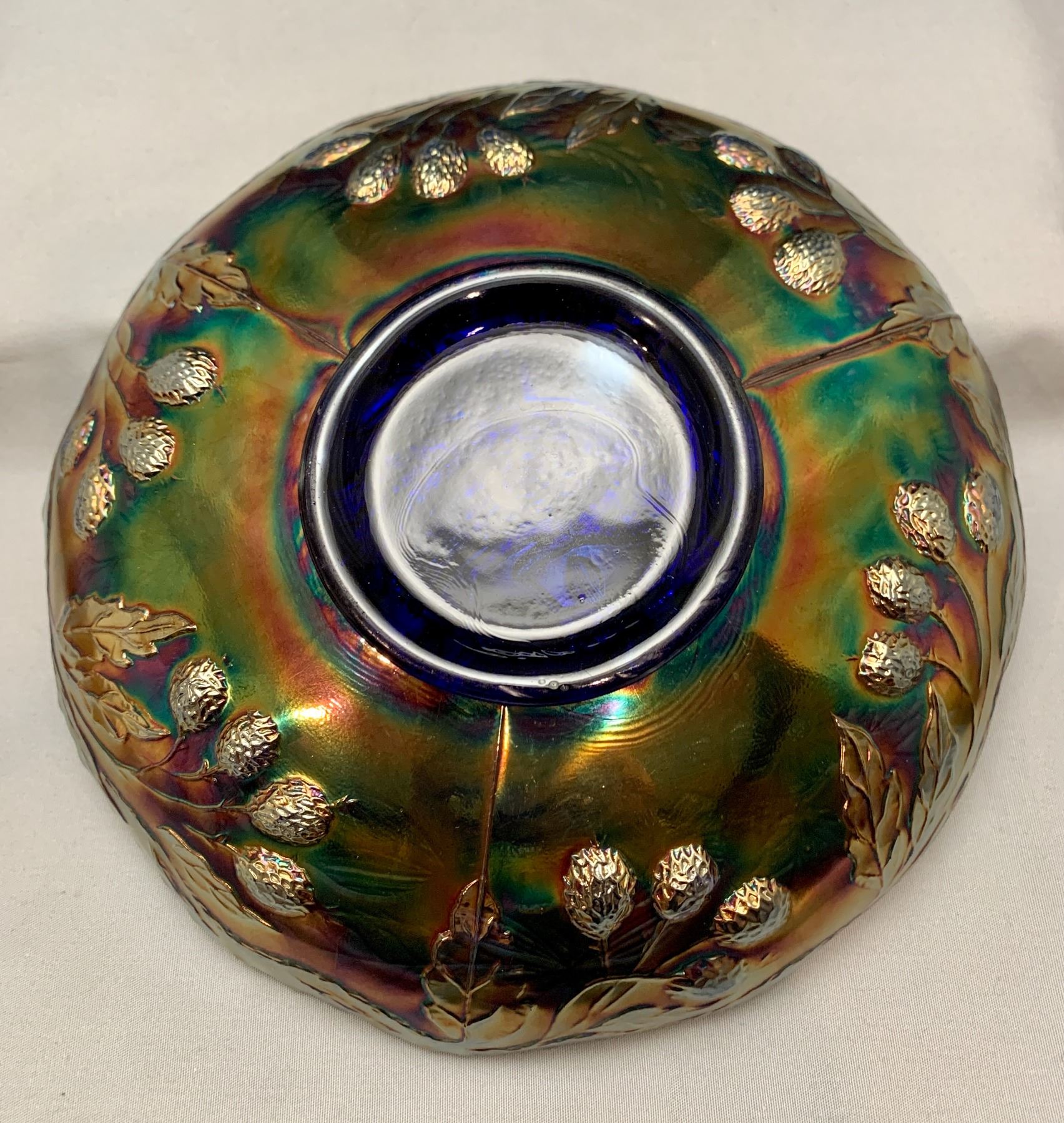 Fenton RARE Cobalt Blue “Peacock & Urn” 8 1/2” Ice Cream Shaped Carnival Glass Bowl - Very Rare Find!