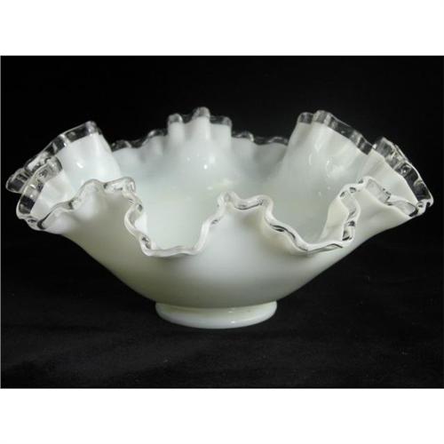 Fenton Silvercrest Ruffled Bowl, 3 1/2"H, 9"D. Condition: no damage noted.