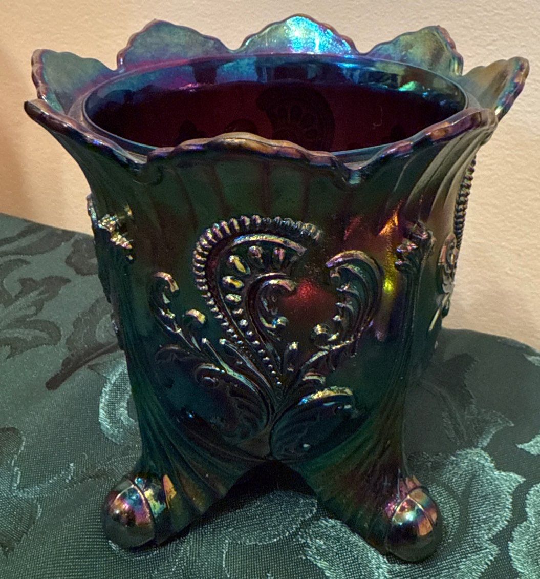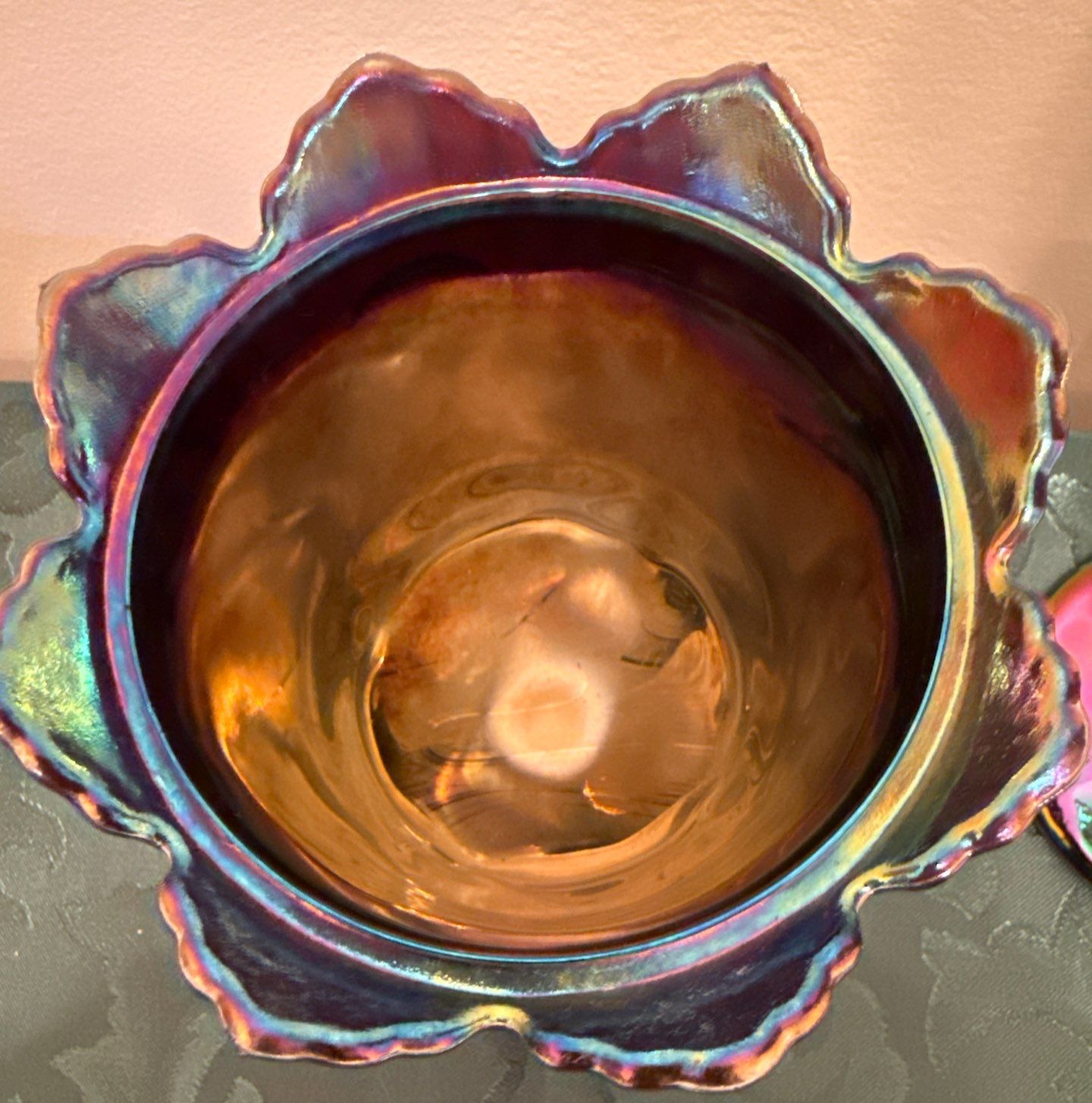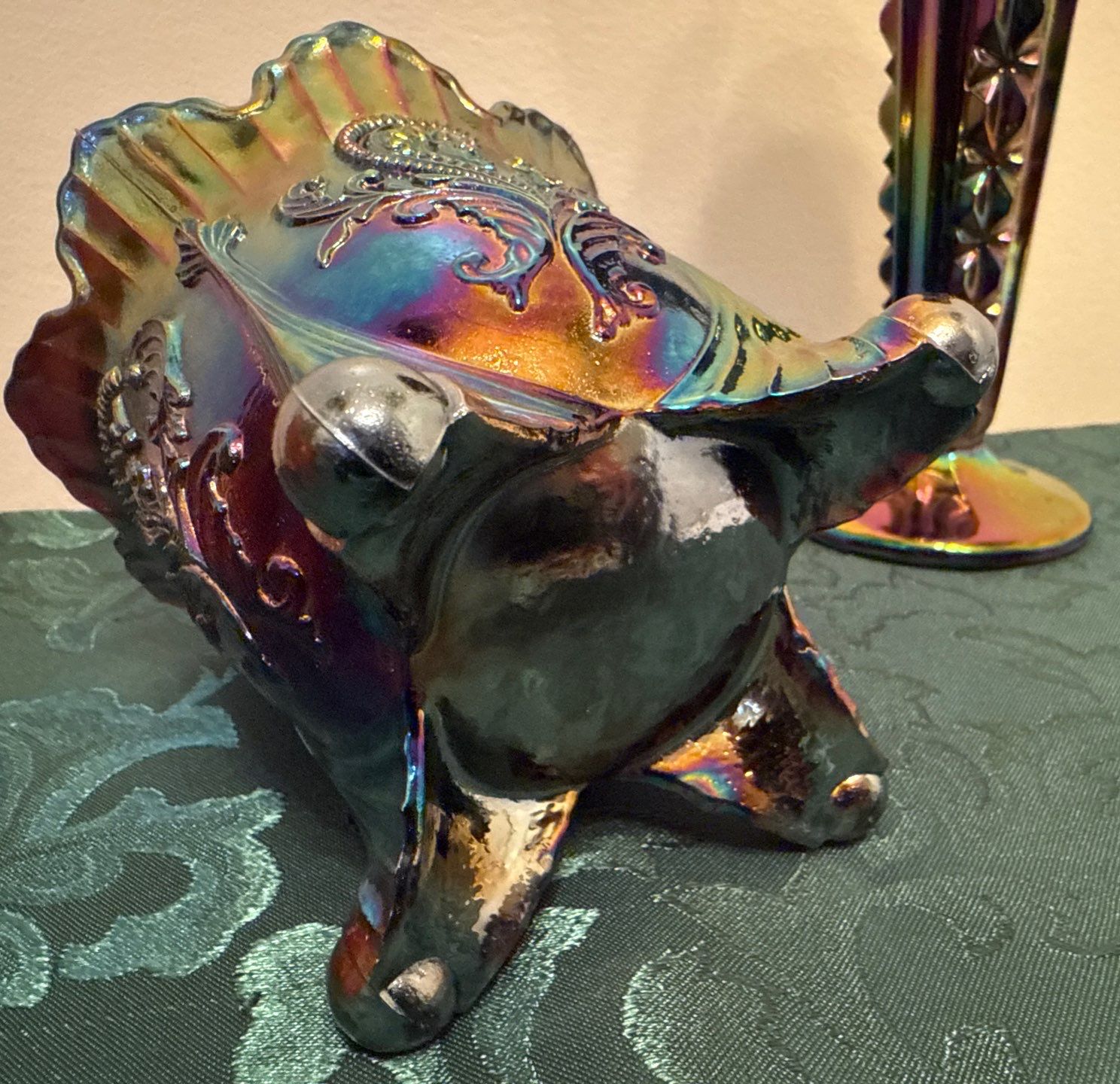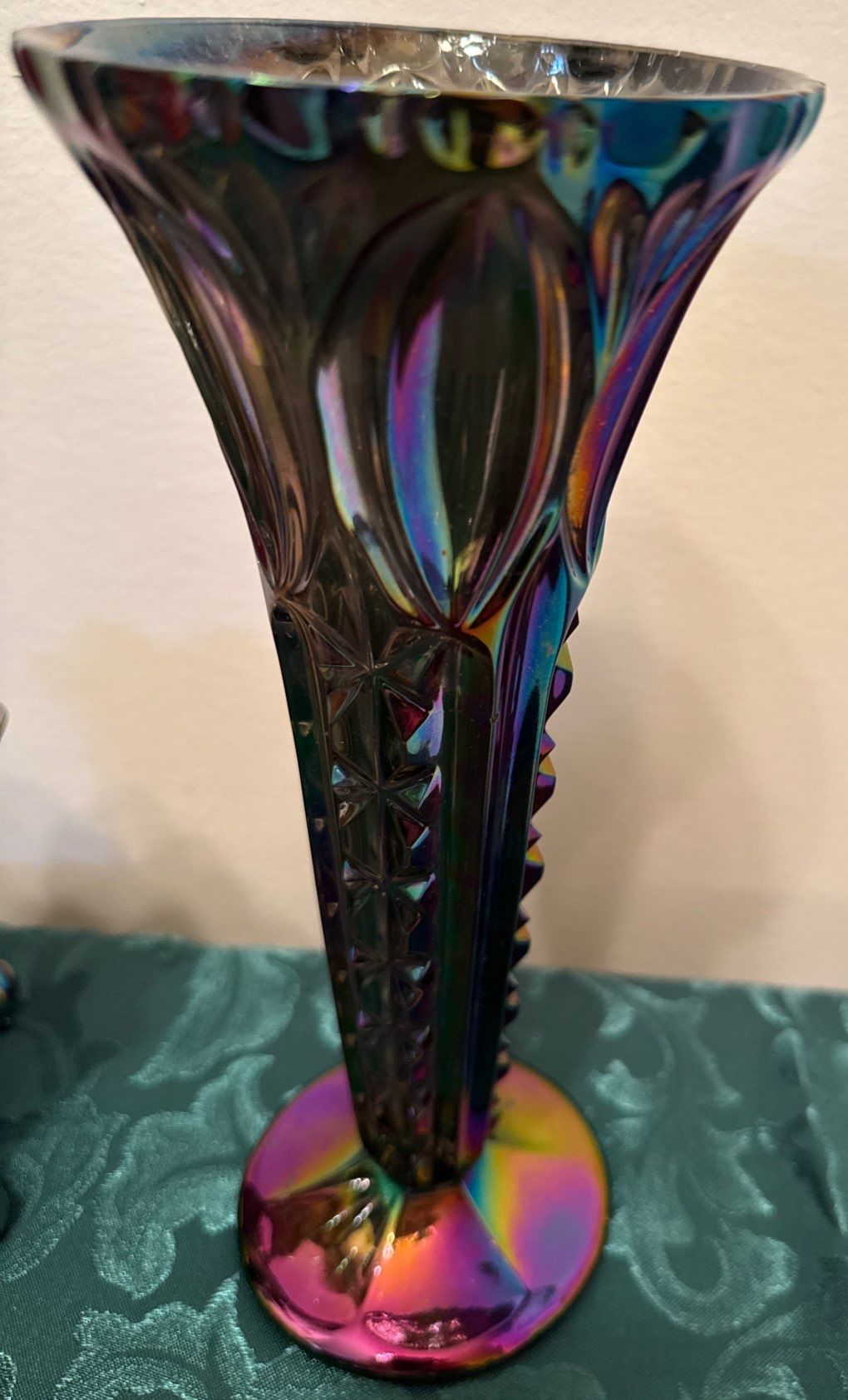Fenton Smoke Carnival Glass Vase & Footed Trumpet Vase w/Ruffled Rim