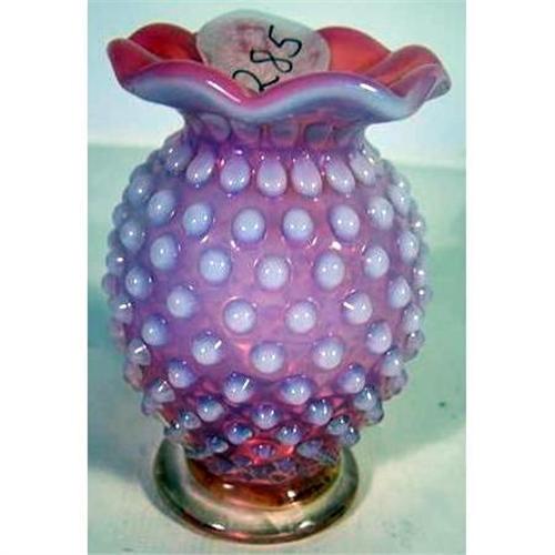Fenton Cranberry Opalescent hobnail Tri Top Miniature Vase 3 1/2"
