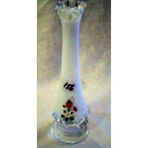 Fenton hand painted artist signed bud vase strawberries with ruffled opalescent top