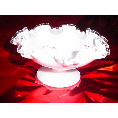 <table width="100%" border="0" cellspacing="0" cellpadding="4"><tr><td><em> WHAT A LOVELY LOW-FOOTED COMPOTE FOR THE CENTER OF YOUR TABLE FILLED WITH CANDY, NUTS, OR SOMETHING SPECIAL!!!</em></td></tr><tr> <td width="100%"> This is a lovely collectible! It's a white silver crest Fenton compote that stands 4 1/4 inches tall. Silver crest is sometimes called, Petticoat Lace. There are no chips, cracks, or scratches; it is in perfect condition. Fenton makes glass at their manufacturing plant in Williamstown, W.V..  This is old Fenton, that is, made before 1973. There is no Fenton mark on the bottom.   </td></tr><tr> <td> </td></tr><tr> <td>Reference #: R672_A</td></tr><tr><td>Condition:Excellent</td></tr><tr><td>Year:1940 to 1973</td></tr><tr><td>Country:U. S. A.</td></tr><tr><td>Maker:Fenton</td></tr><tr><td>Height:4.25 inches</td></tr><tr><td>Depth:Diameter across the bottom = 3 15/16 inches</td></tr><tr><td>Width:Diameter across the top = 8 inches</td></tr><tr><td>Title:Fenton silver crest low-footed compote</td></tr><tr><td>Location:Franklin County (Greater Columbus), Ohio, U.S</td></tr></table>