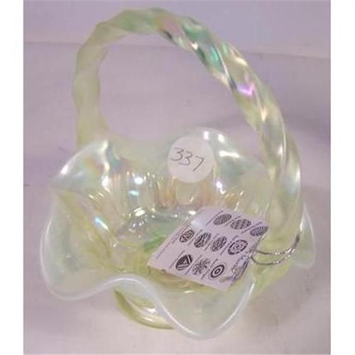 Fenton Vaseline basket with twisted handle 5 1/2"