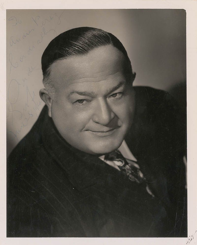 American composer (1892–1972) best known for making the original arrangement of Gershwin’s Rhapsody and Blue and for his own perennially popular concert staple, the Grand Canyon Suite. Vintage glossy 8 x 10 photo, signed and inscribed in blue ink “To Andres Perez, Cordially, Ferdie Grofe, April 28, 1949.” In very good condition, with scattered creases and surface marks, a couple spots of silvering, show-through from notations on reverse, and overall irregular adhesion to signature and inscription, which is fairly light, but still legible.