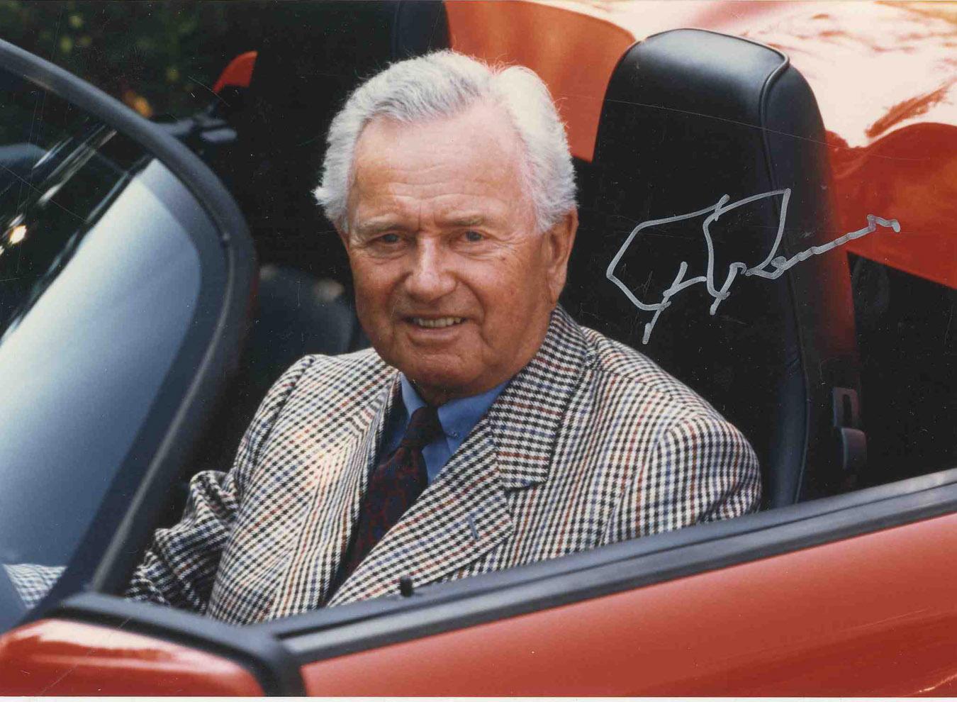 Signed Photo of Legendary Automaker Ferdinand ''Ferry'' Porsche -- 7'' x 5'' -- Signed in Silver Ink -- Excellent Condition