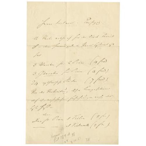 <B>Ferdinand Hiller Autograph Letter Signed,</B></I> 5.5 x 8.5, 4 pages (front and verso), December 6, 1852, Cln. Hiller (1811-1885) was a German composer, conductor, writer and music-director. He composed among other works six operas between 1839 and 1865, and a violin concerto. Fine. <I>From the collection of Henry E. Luhrs</B></I> <BR><BR><b>Shipping:</b> Flat Material, Small (<a target="_blank" href="http://www.heritageauctions.com/common/shipping.php">view shipping information</a>)