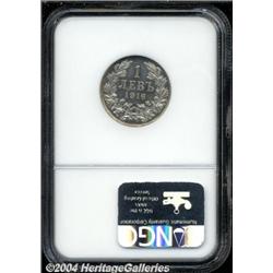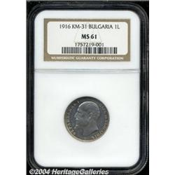 <B>Ferdinand I 1 Lev 1916, </B></I>KM31, MS61 NGC, very rare date. <BR><BR><B>Important notice:</B> Heritage usually auctions material at the rate of 200-250 lots per hour. On some occasions eBay Live bid software or the Internet may not be able to keep up with the pace of the auction. We recommend placing a realistic absentee bid now as insurance to avoid disappointment. Occasionally the auctioneer may eliminate or reject an eBay Live bid, and the auctioneer may also reopen a lot after the close of the eBay live bidding (usually because we missed an audience bid), and may reject your bid even if it shows you as the winning bidder. By bidding via eBay Live, you agree that Heritage may award the lot to another bidder at its sole discretion under the circumstances described above or any other reasonable circumstances. Since eBay bids are not shown to us until we open the lot on the floor, we treat those bids just like floor bids. In most cases the floor responds before the eBay bid is presented to us, due to Internet lag time, so for consistency we have made it a policy that floor bids are always considered first over tie eBay live bids. Also please note that all Heritage lots purchased through eBay Live carry a 20% Buyer's Premium. Please make sure you read the Terms and Conditions before you bid.